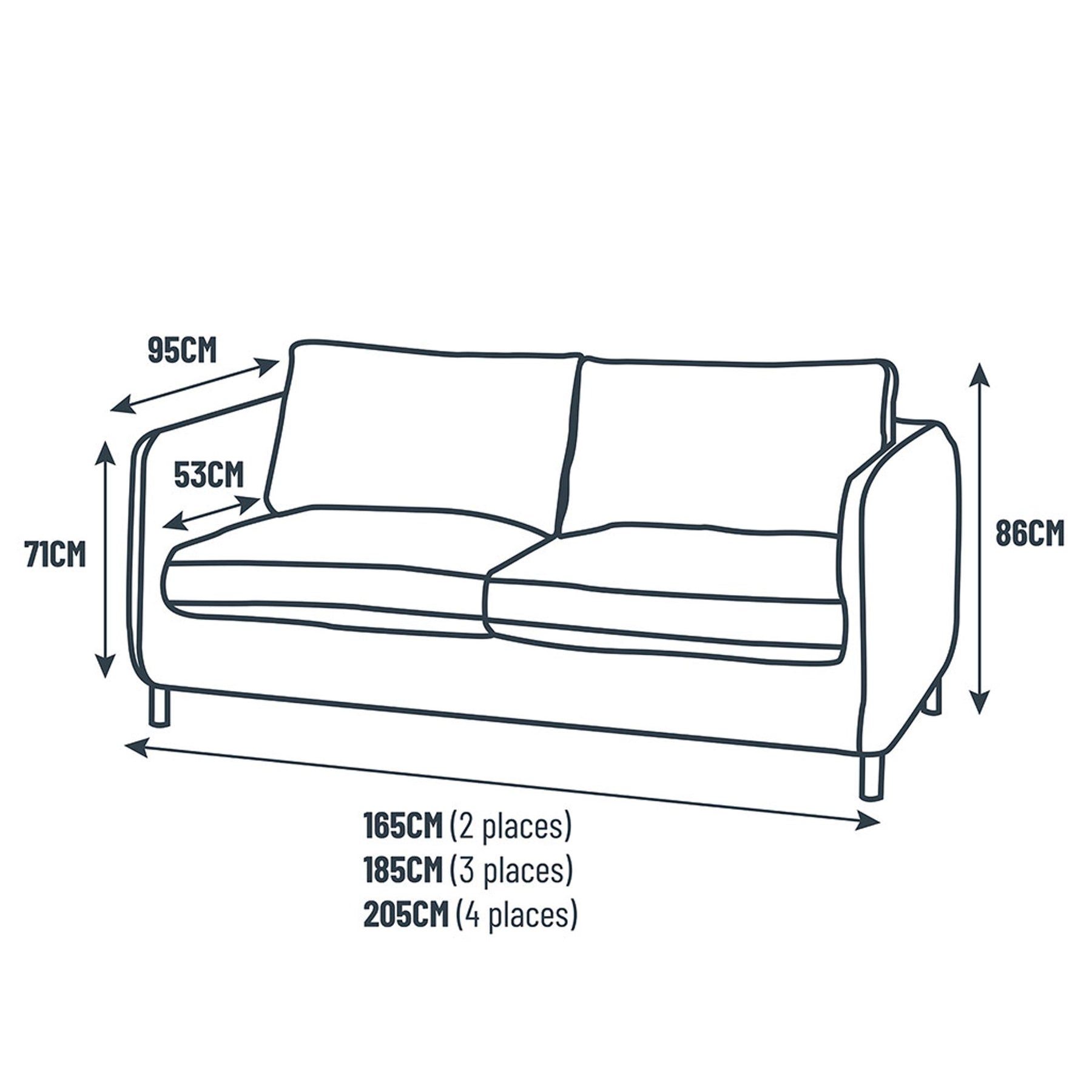 Assise : Coussins indépendants non déhoussables en mousse PE 28 kg/m³ et fibre polyester