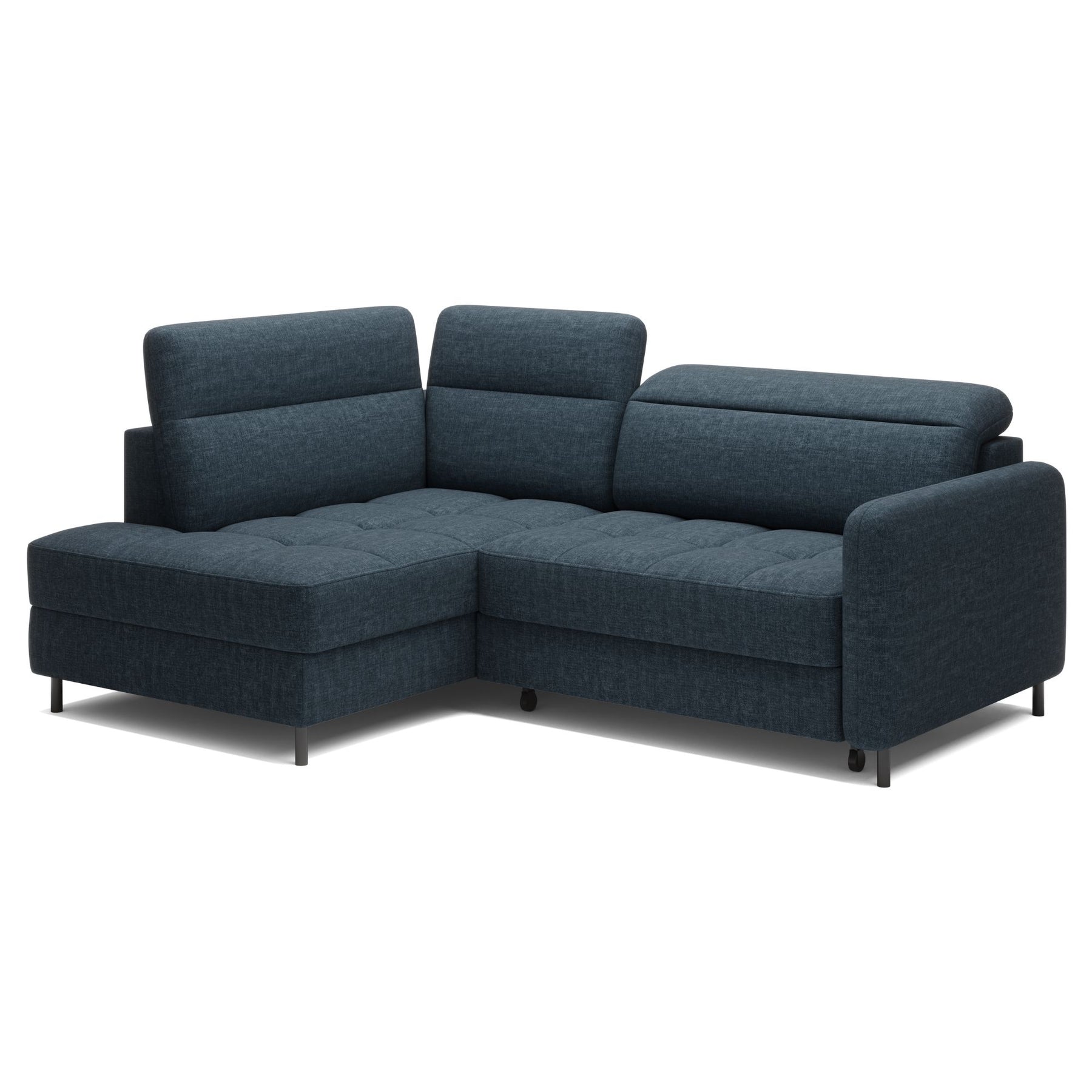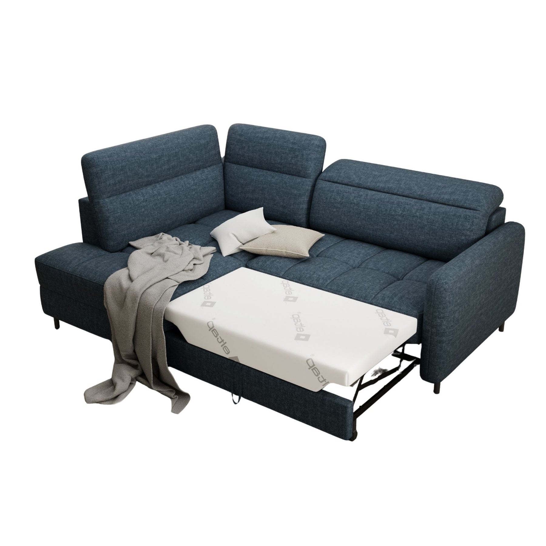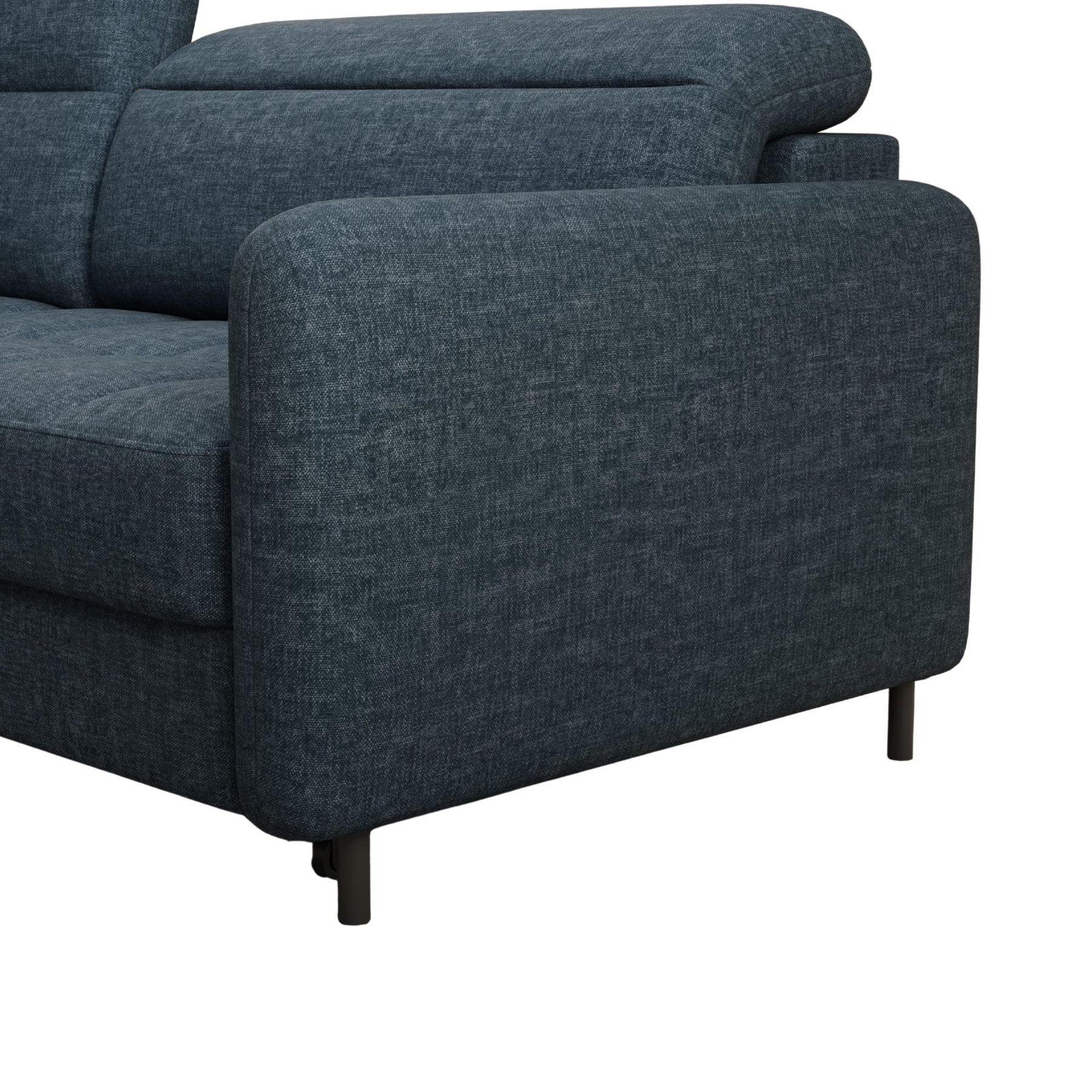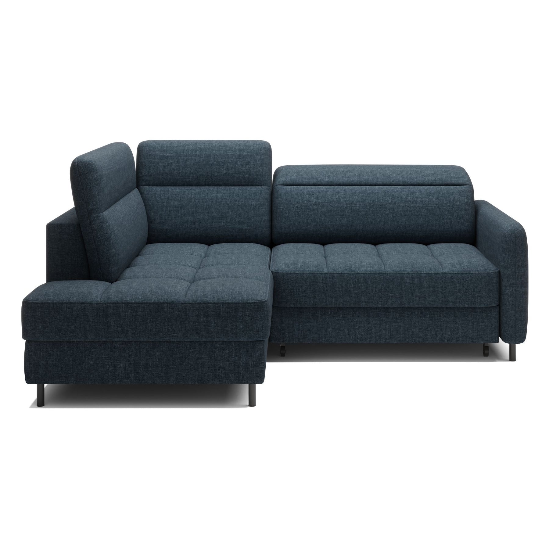 Canapé convertible d'angle gauche Borea en tissu bleu foncé avec coffre