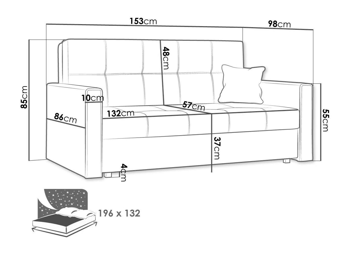 • Son couchage confortable 196 x 132 cm