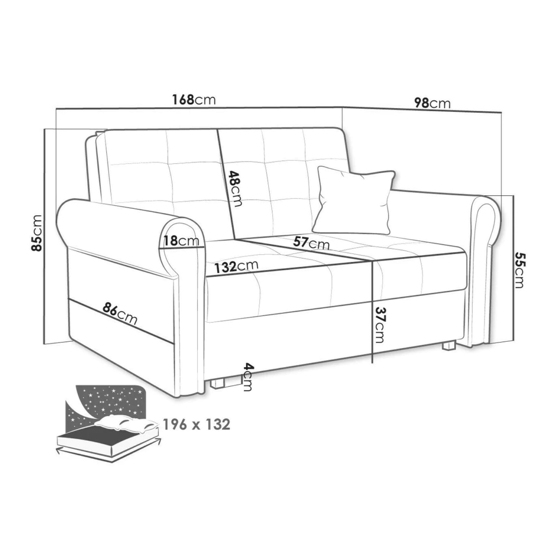 • Largeur du couchage : 132 cm