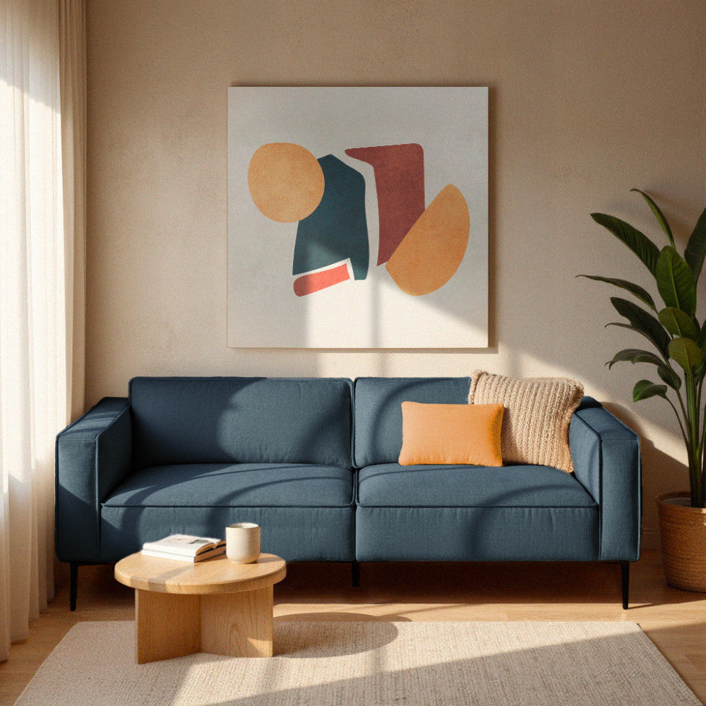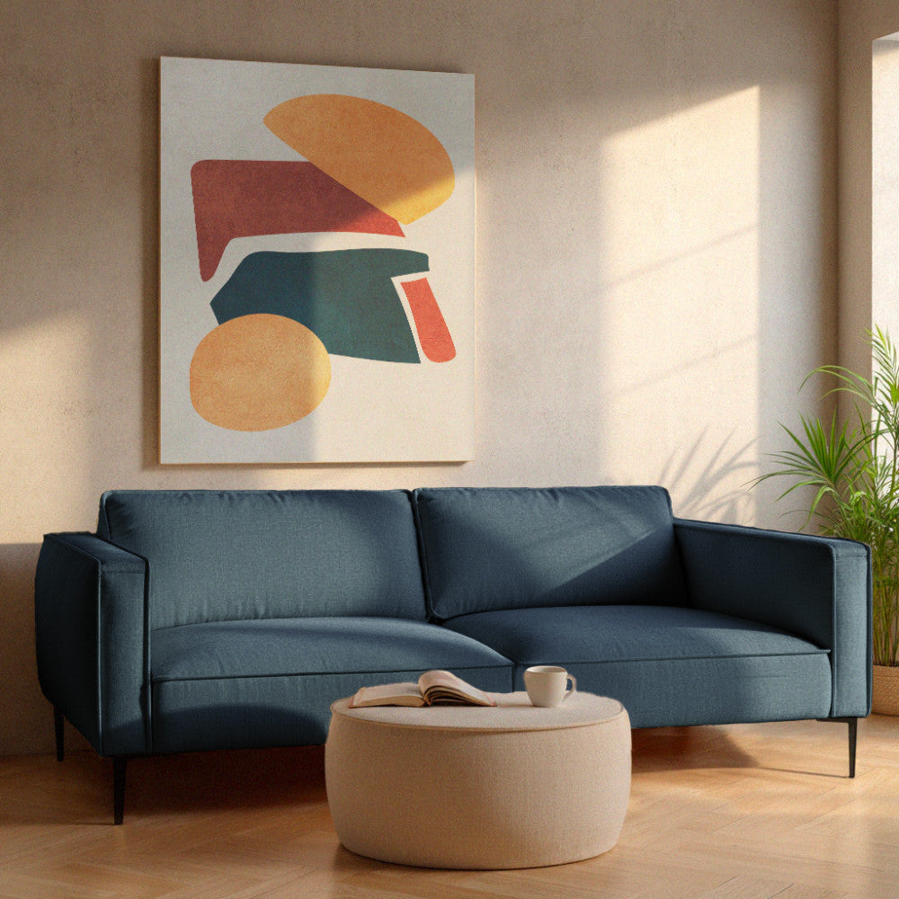 Canapé Drawer Montbello 3 places en tissu bleu foncé pieds en métal