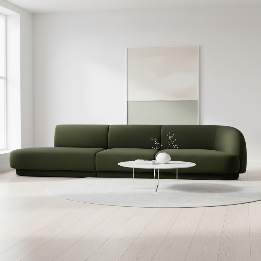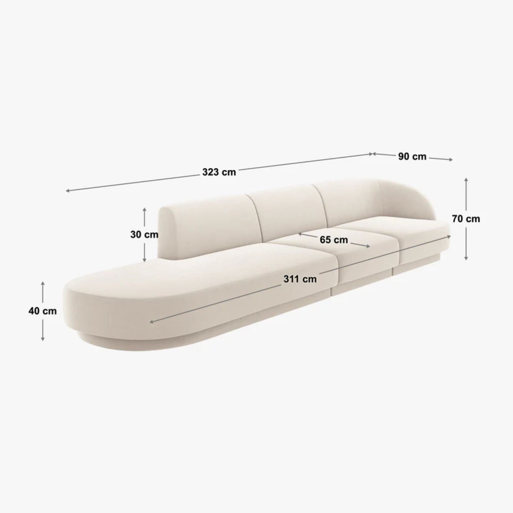 Le canapé panoramique Miley de MICADONI s’impose comme une pièce maîtresse du salon, pensée pour le partage, le confort et l’élégance. Il offre un vaste espace de détente où chacun trouve naturellement sa place, que ce soit pour se relaxer, recevoir ou profiter de longs moments conviviaux.