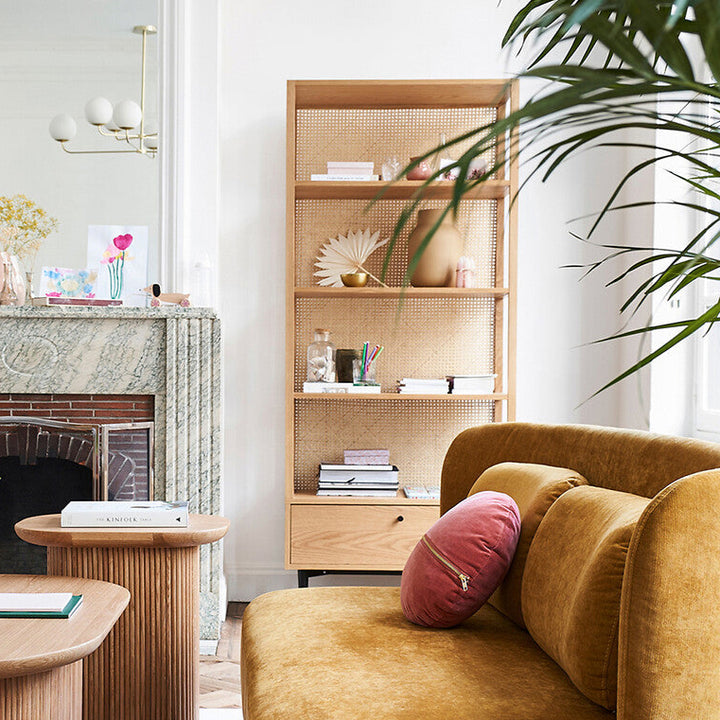 Bibliothèque LA REDOUTE Noya en chêne plaqué et cannage de rotin