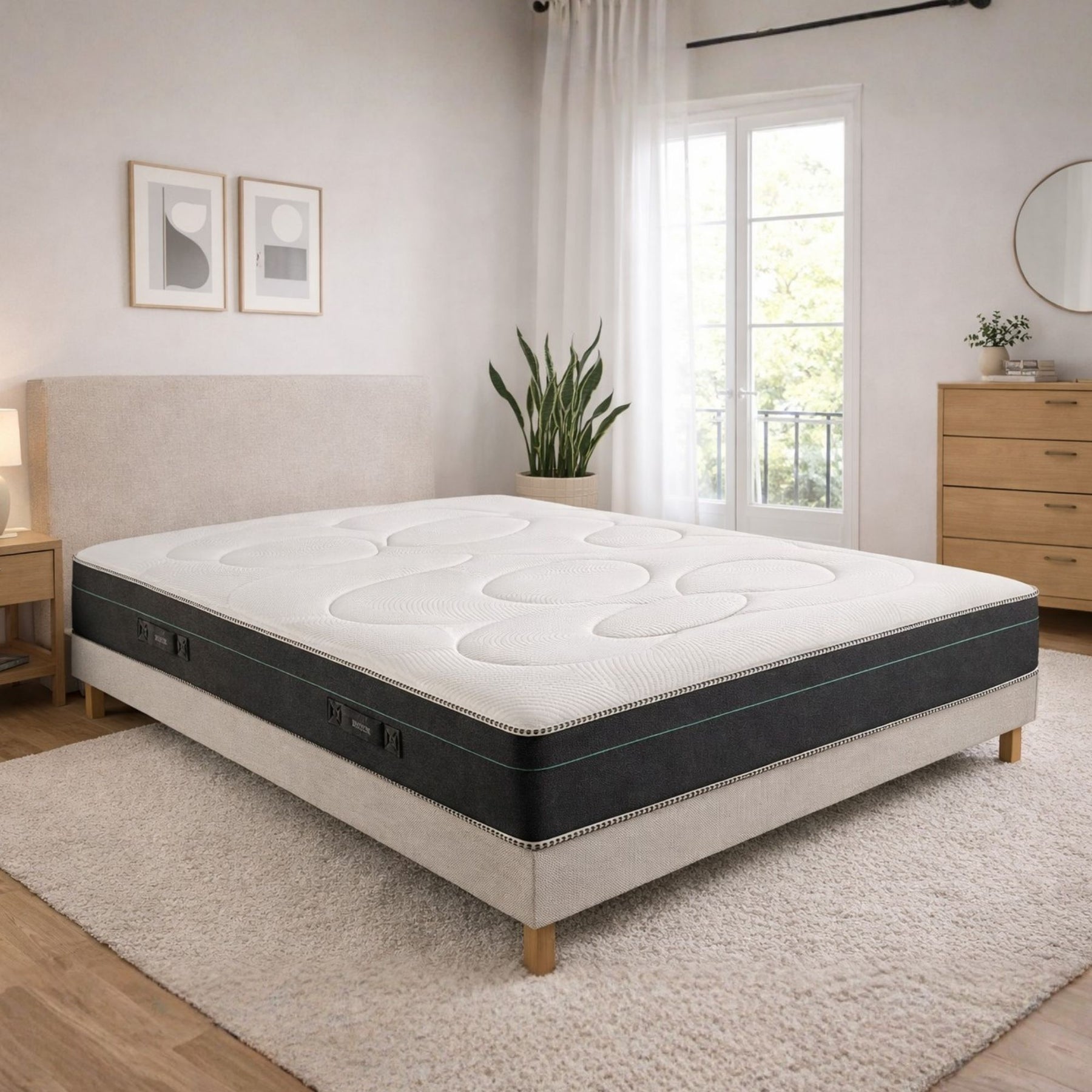 Avec son âme Flow 100 % Bultex Nano (35 kg/m³) et ses 4 cm de mousse à mémoire de forme, le matelas Elma offre un confort progressif et une sensation d’enveloppement douce dès l’endormissement. Grâce à ses 5 zones de confort différenciées, il assure un maintien morphologique précis, favorisant une posture naturelle et un sommeil profond.