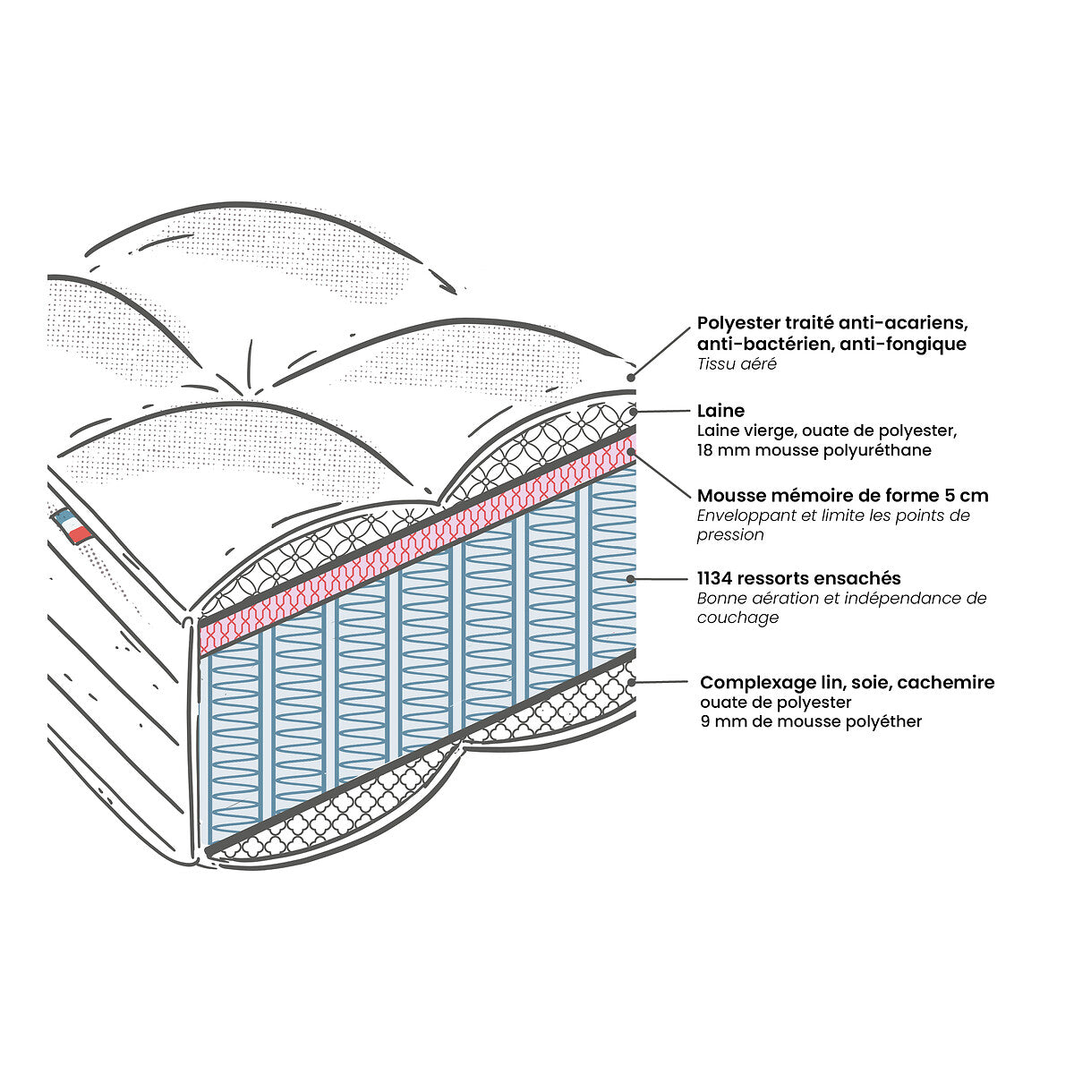 🛏️ 1134 ressorts ensachés pour un soutien précis et durable