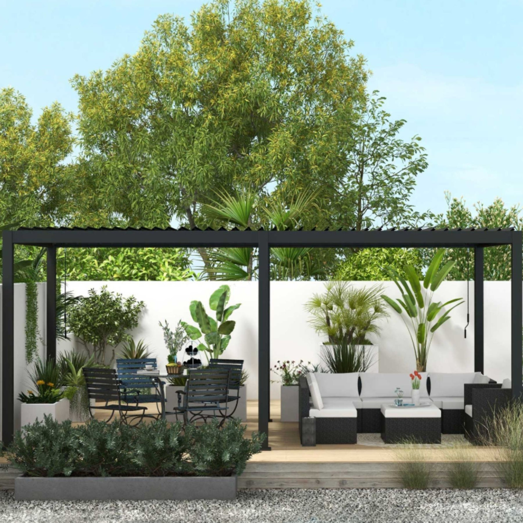 Ses lames orientables jusqu’à 98° se manient aisément grâce à une manivelle intuitive, vous permettant d’ajuster ombre, luminosité et ventilation selon vos envies. En cas de pluie, son système de drainage intégré breveté assure une évacuation discrète et efficace de l’eau, pour conserver un espace parfaitement sec sous la pergola.