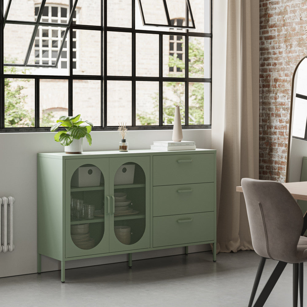 Buffet Zio 2 portes en métal vert menthe L140cm DRAWER