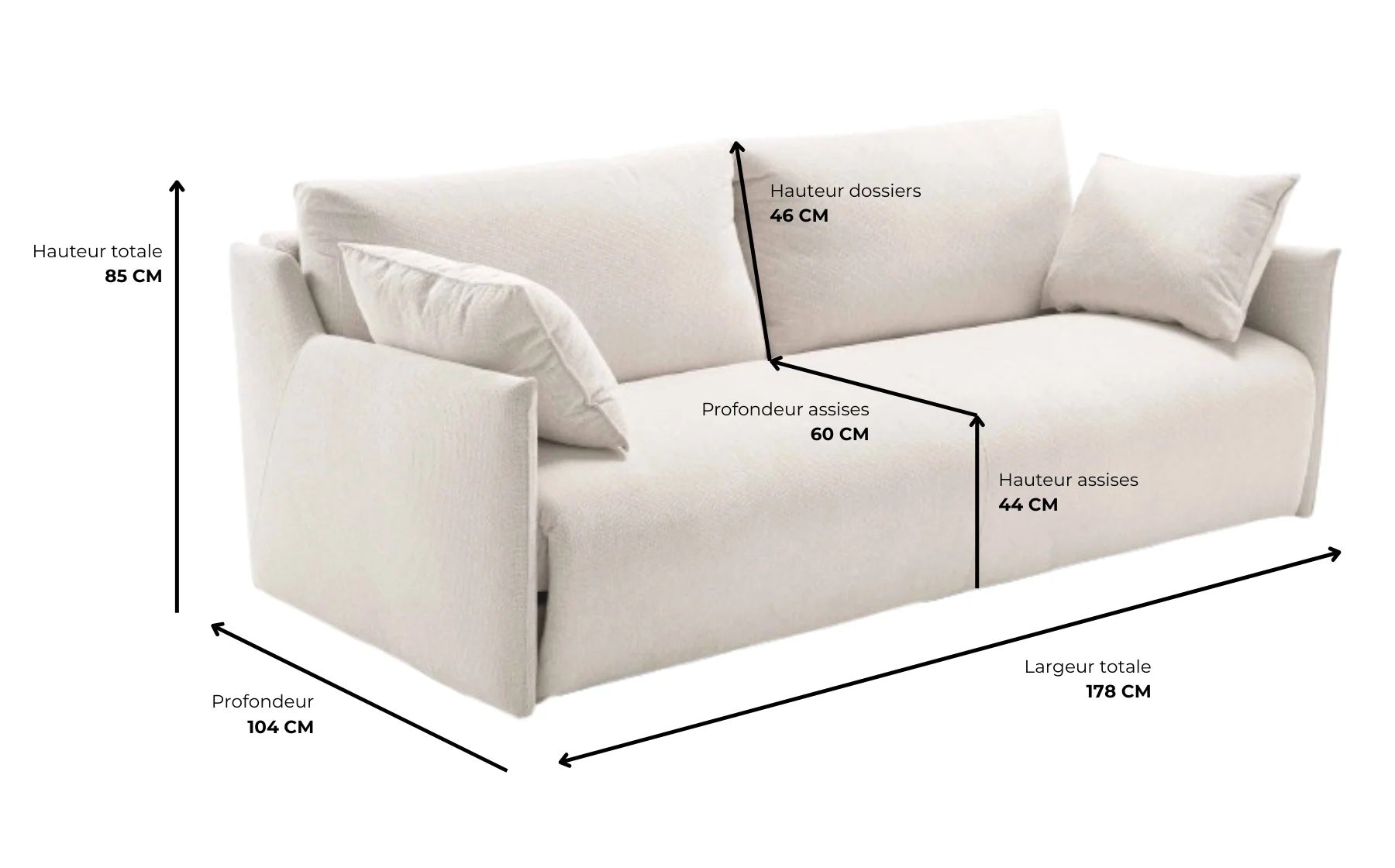 • Profondeur d’assise : 60 cm