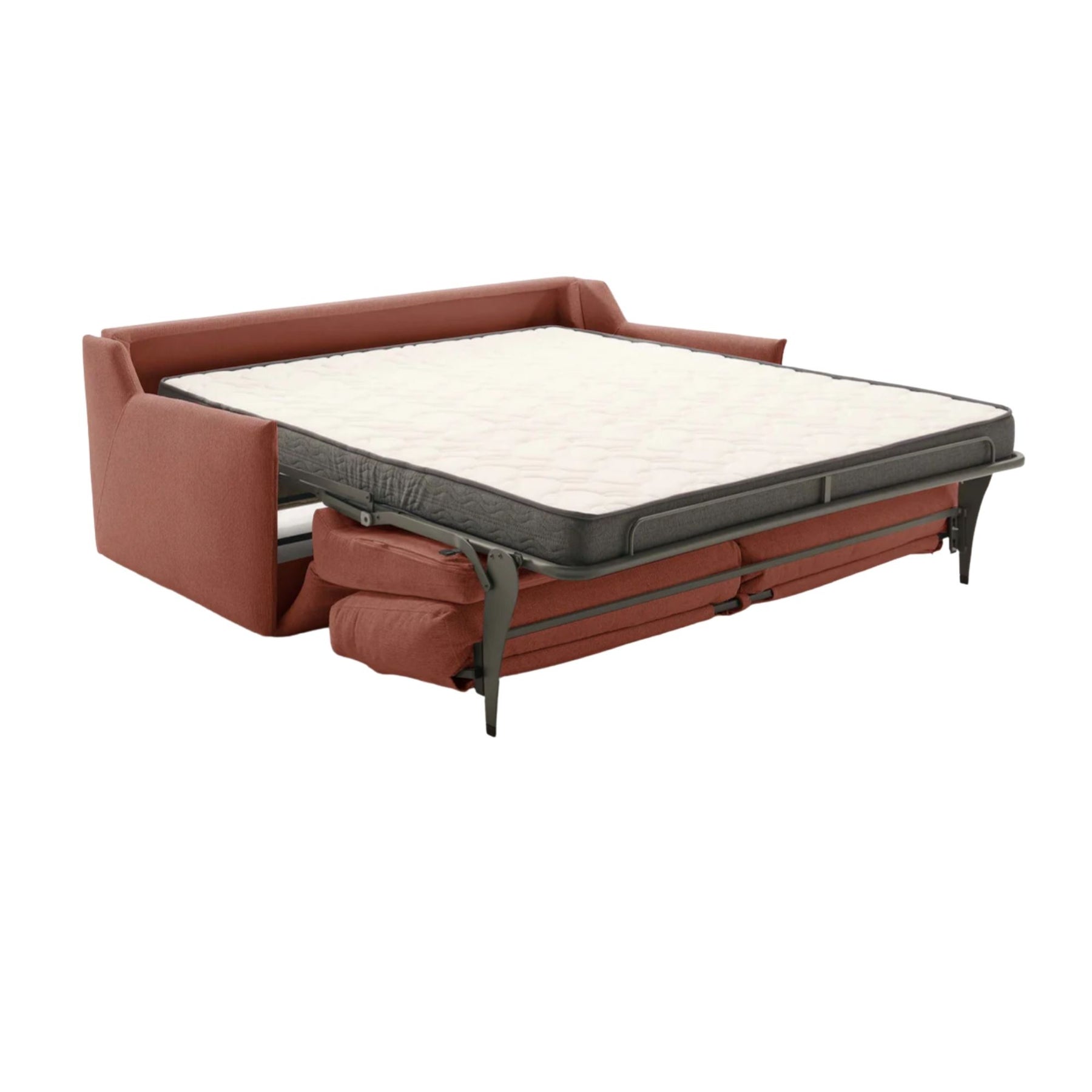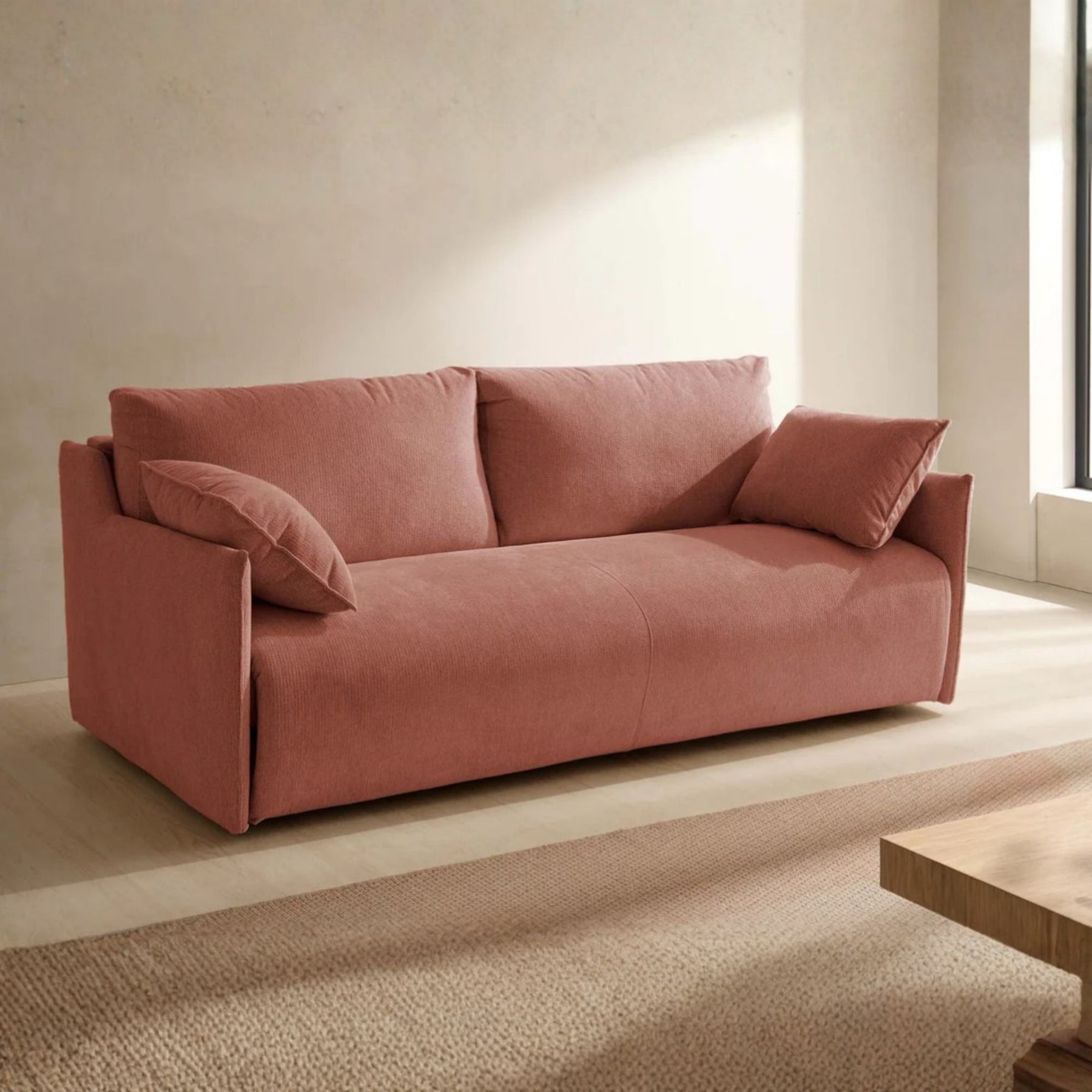 Apportez chaleur et fonctionnalité à votre salon avec le canapé convertible ATHÈNES de CONVERTIBLE CENTER. Son design contemporain aux lignes épurées et son velours texturé couleur rouille créent une ambiance cosy et élégante, parfaite pour un intérieur accueillant et moderne.
