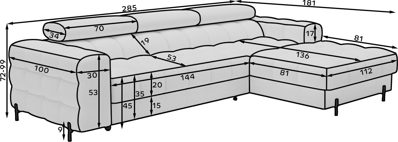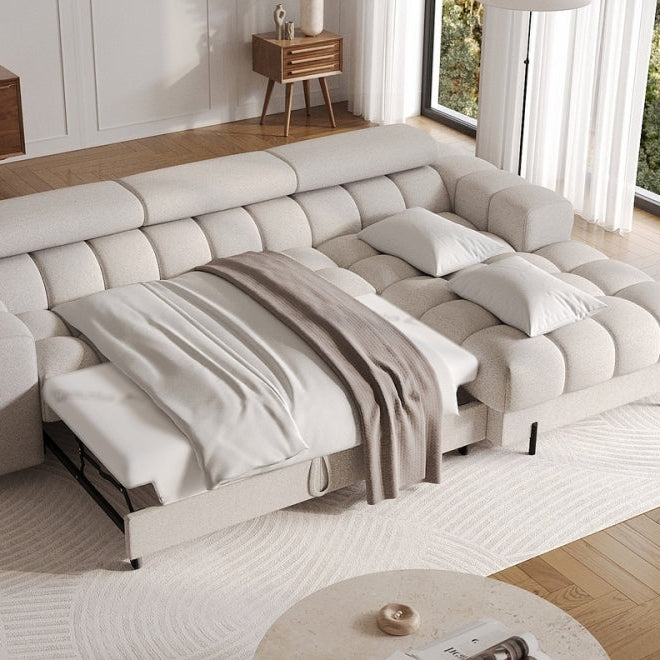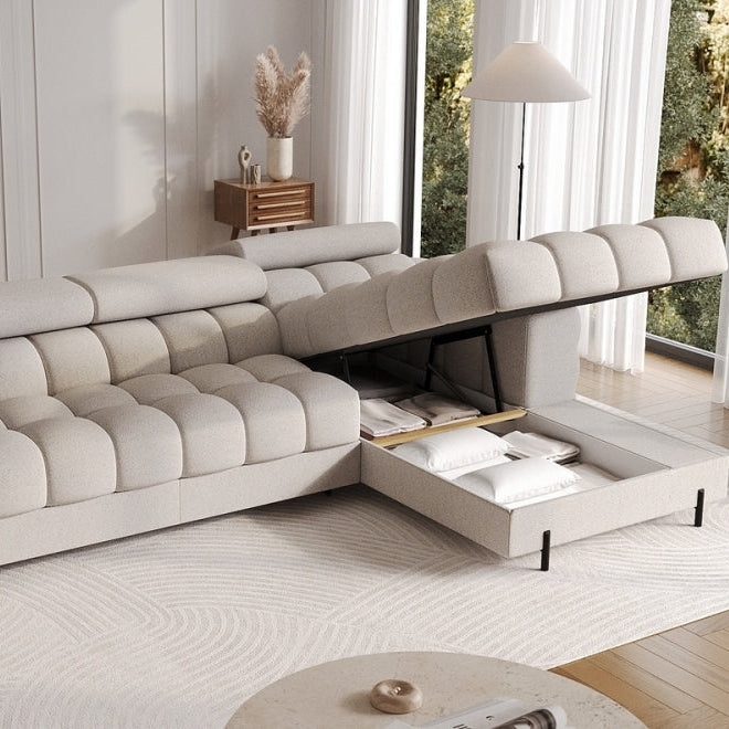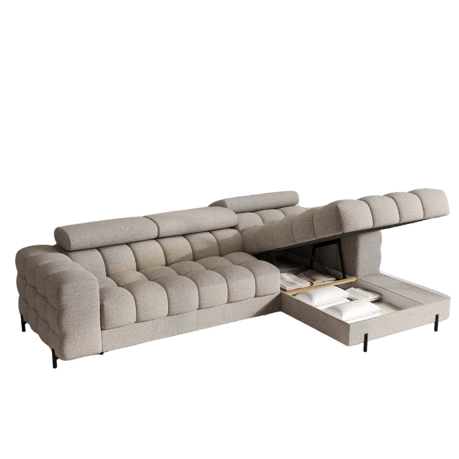 Canapé convertible d'angle droit LES TENDANCES Kate 4 places en tissu beige