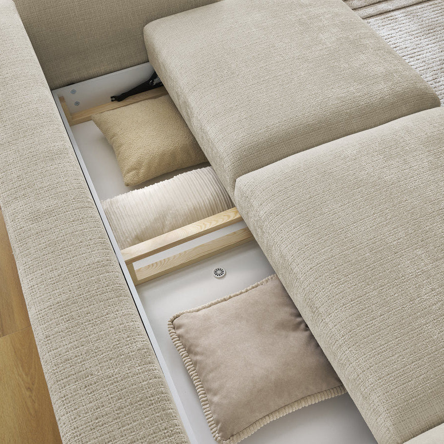 Mais Denise ne se contente pas d’être beau. Grâce à sa fonction convertible, il se transforme en couchage confortable en quelques secondes, faisant de lui un allié indispensable pour les petits espaces, les studios ou pour recevoir des invités en toute simplicité. Son coffre de rangement intégré permet quant à lui d’optimiser l’espace en toute discrétion.