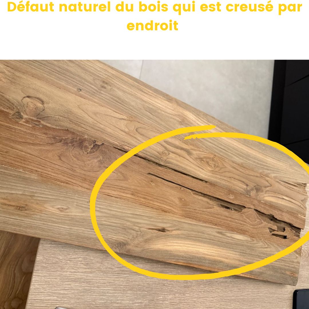 Défaut: plateau bois creusé par endroits naturellement (voir photo)