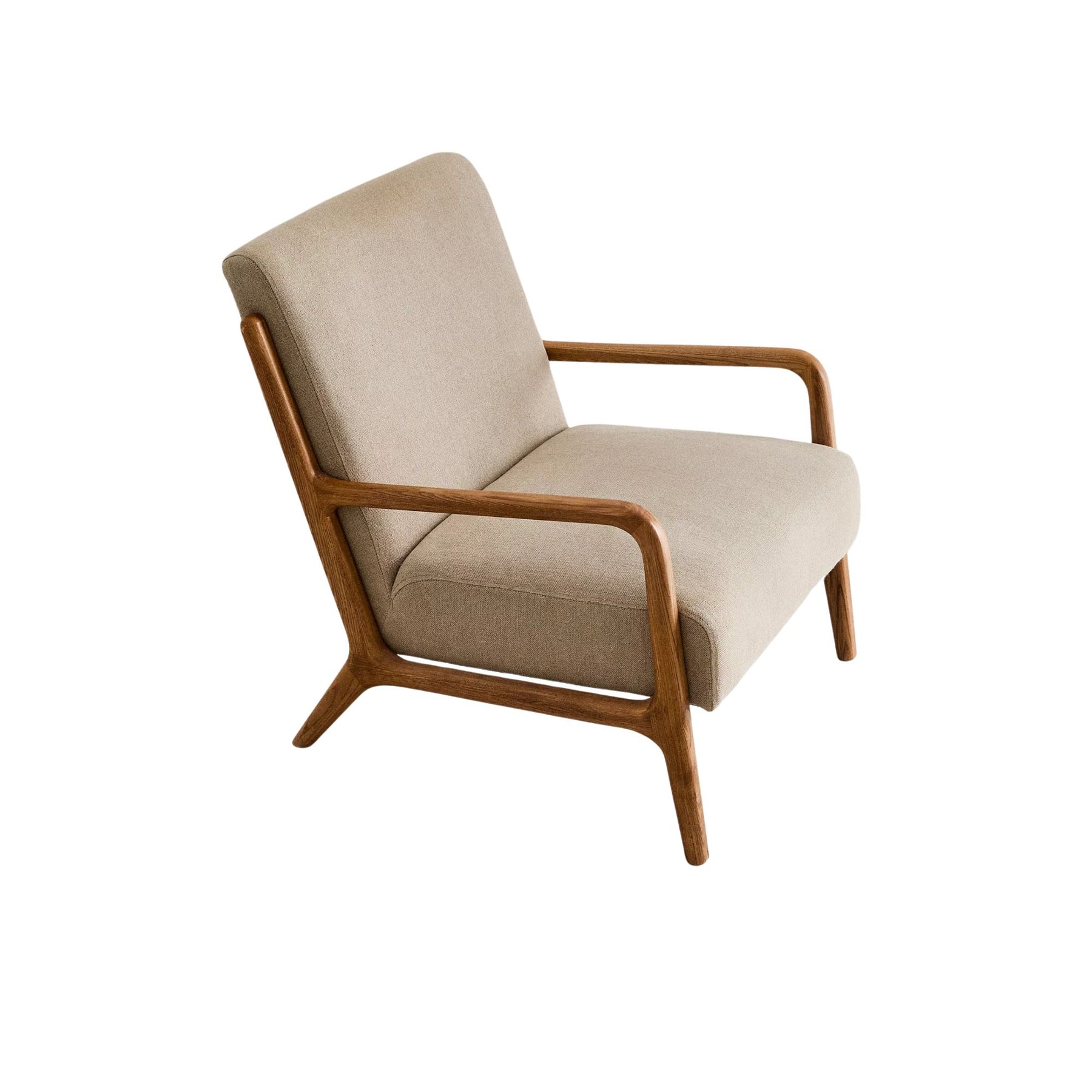 La structure et les accoudoirs en bois de frêne apportent une touche chaleureuse et raffinée, tandis que le revêtement en lin offre un confort naturel, respirant et agréable au quotidien. Léger visuellement comme physiquement, ce fauteuil trouve facilement sa place dans un salon, une chambre ou un coin lecture, où il invite à la détente et au calme.