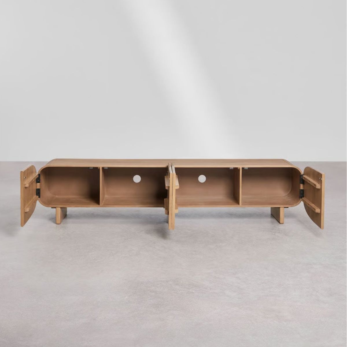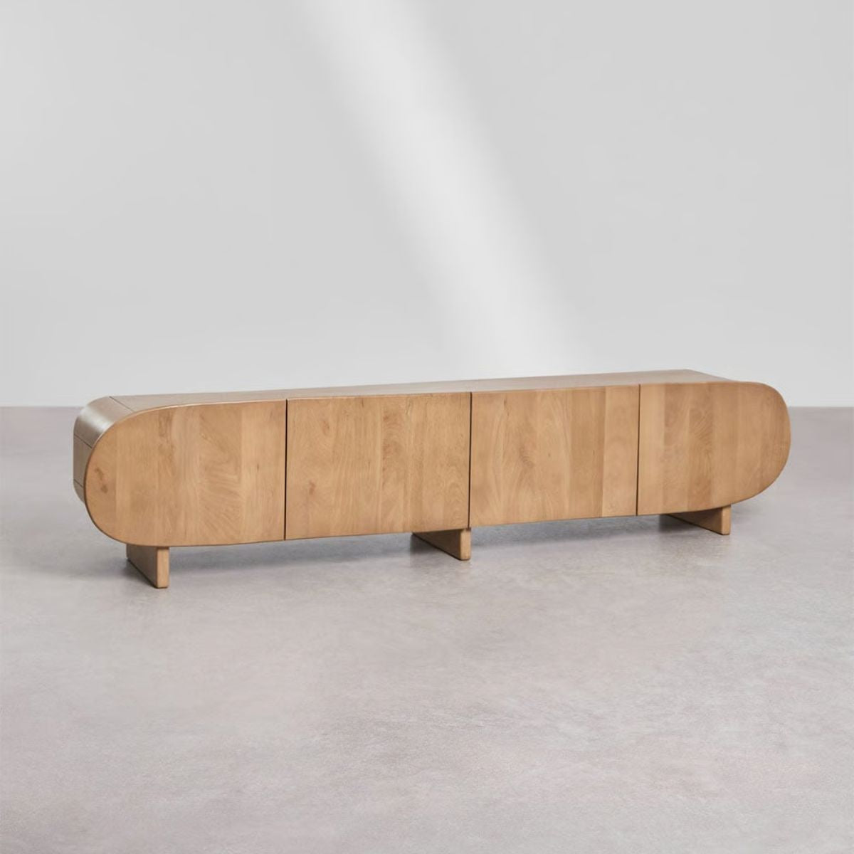 Apportez du caractère à votre salon avec le meuble TV Agathe en bois de manguier massif 220 cm de la marque SKLUM, une pièce à la fois design et fonctionnelle. Avec ses lignes courbes élégantes et sa finition naturelle, il s’intègre parfaitement dans un intérieur moderne, bohème ou contemporain.