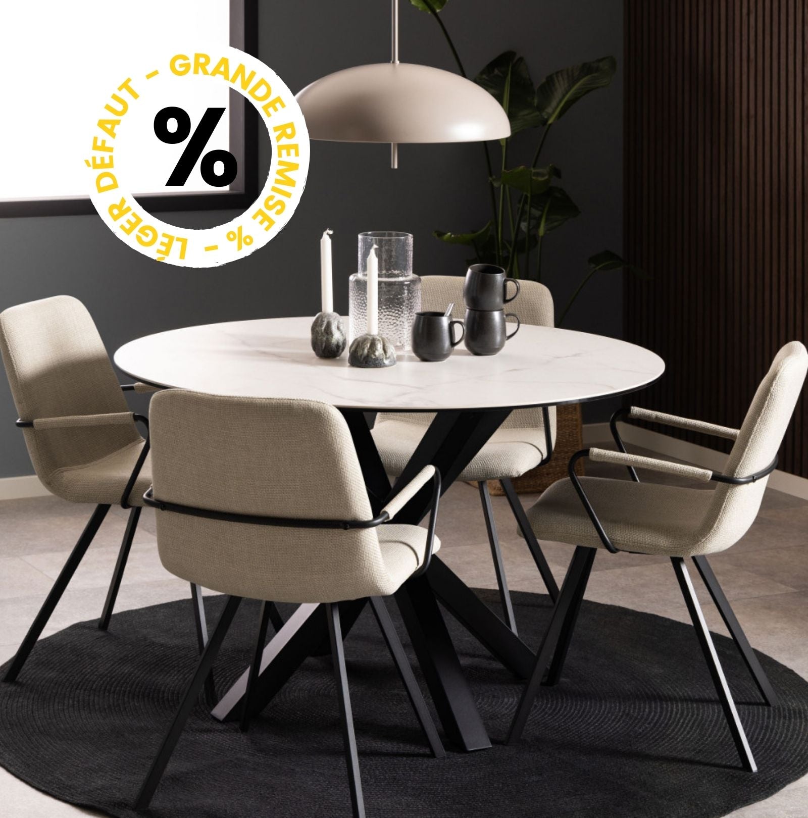 Table à manger 4 places ronde en céramique et métal Drawer - Léger défaut