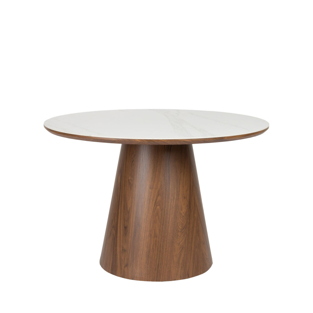 Table à manger ronde DRAWER Almira 4 personnes en pierre et bois foncé