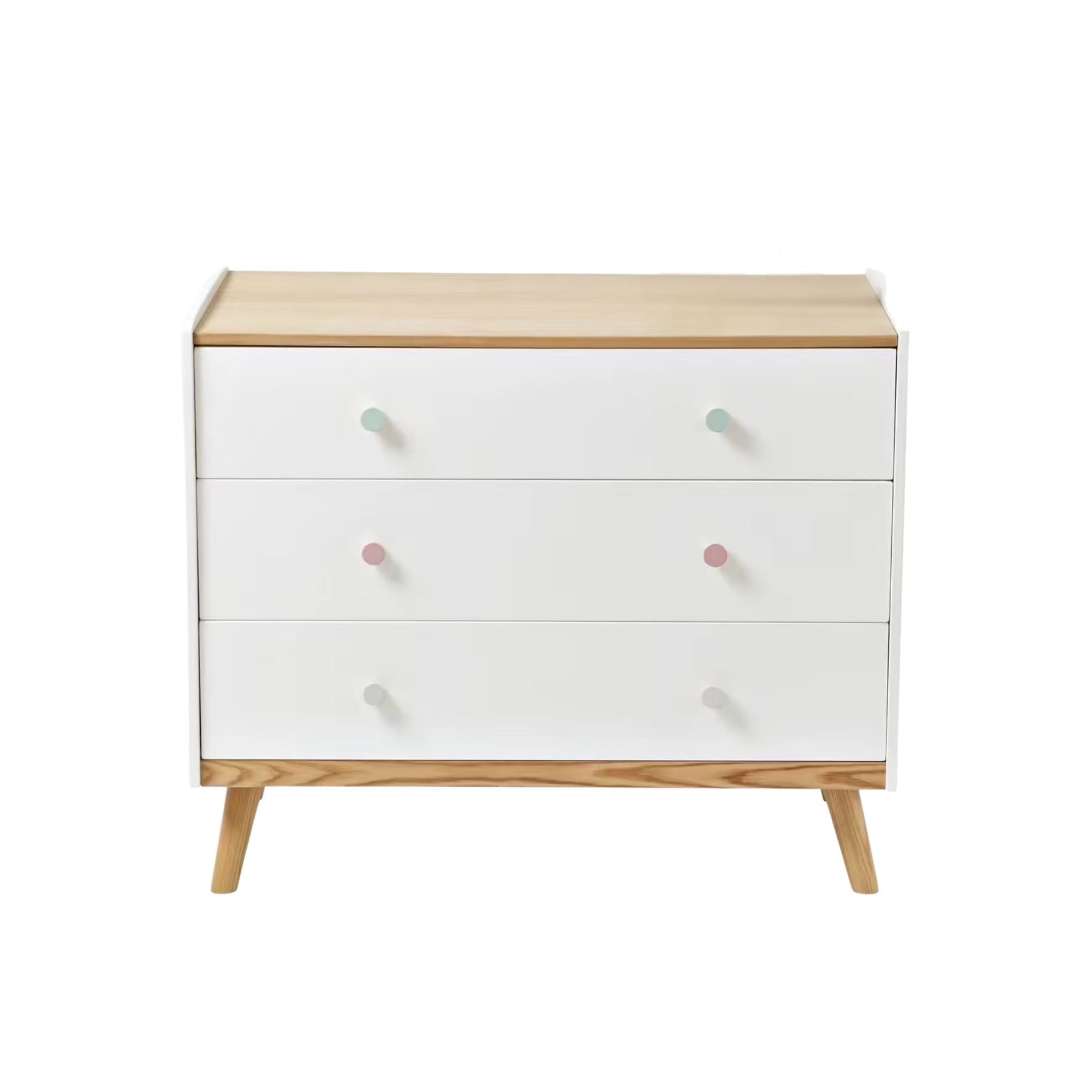 La commode VERTBAUDET Confetti blanc allie design scandinave doux et fonctionnalité pratique pour organiser efficacement la chambre de votre enfant. Pensée pour s’adapter à tous les styles, elle est livrée avec plusieurs jeux de poignées colorées pour personnaliser facilement son look selon vos envies déco. 💡 Sa ligne épurée et ses tiroirs spacieux sur rails métalliques font de cette commode un meuble aussi esthétique que utile.