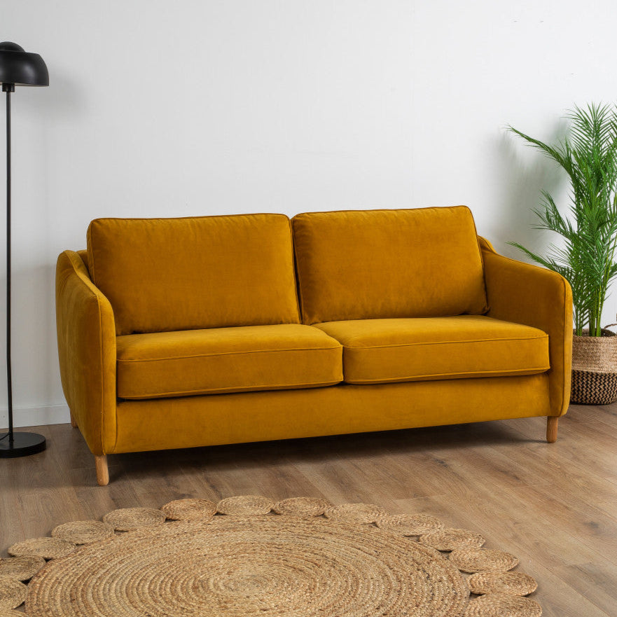 Canapé convertible DRAWER Vornay express 2 places en velours jaune moutarde