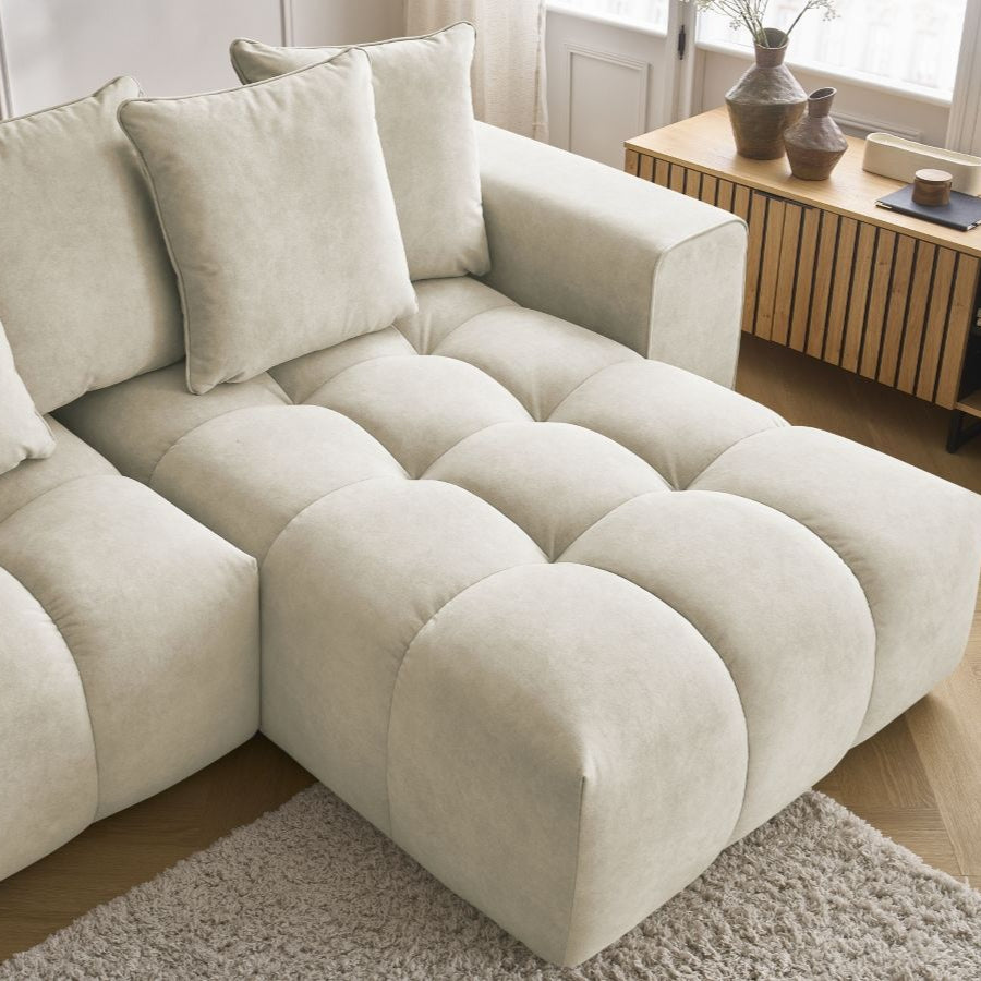Canapé panoramique fixe BOBOCHIC Mont-Blanc velours Beige