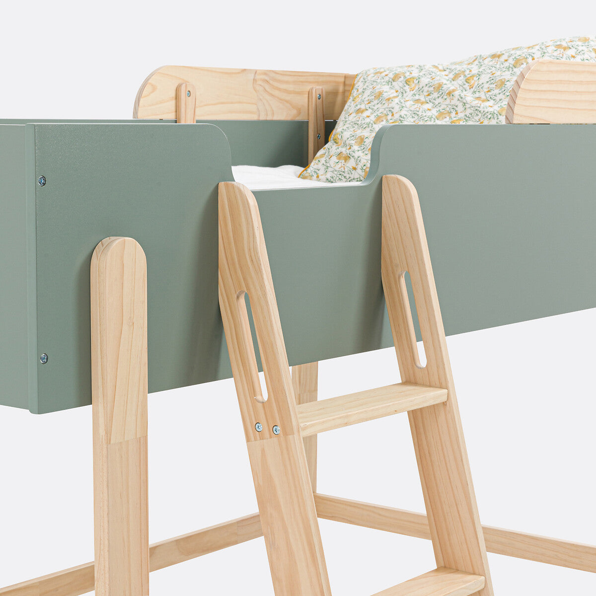 Le lit mi-hauteur avec sommier Arturo. C'est un rêve de pouvoir prendre un peu de hauteur la nuit ! Ce lit mi-hauteur libère également de l'espace au sol pour accueillir du rangement ou un espace de jeu.Description