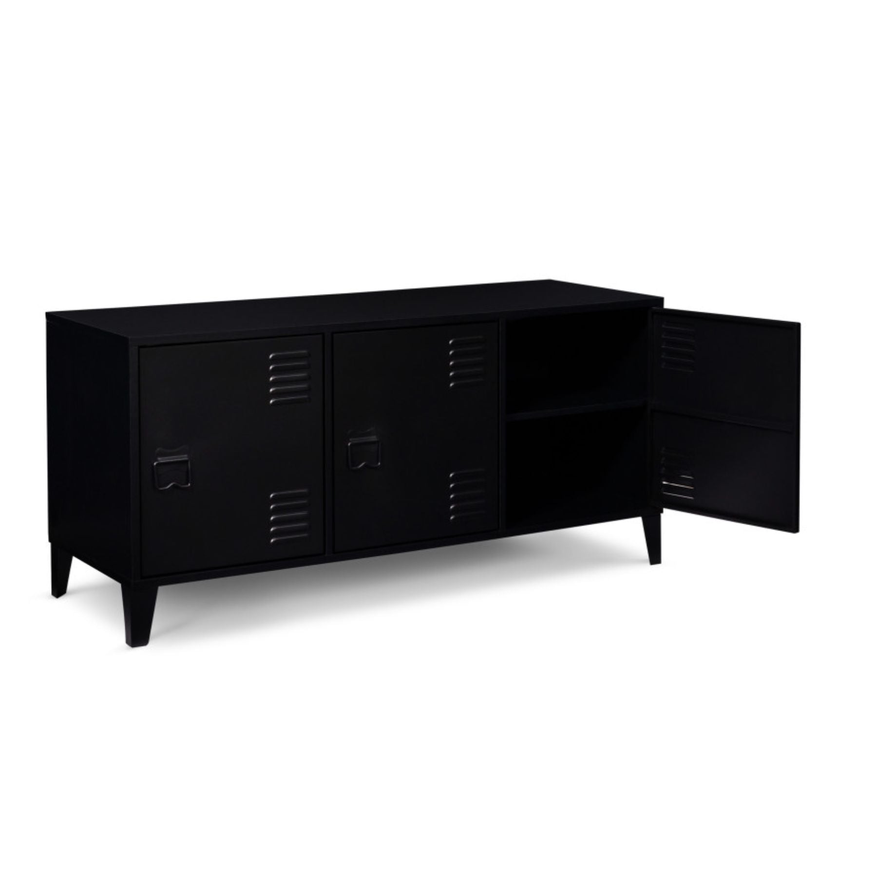 Matériaux : Portes et pieds en métal, reste de la structure en particules de bois 15 mm