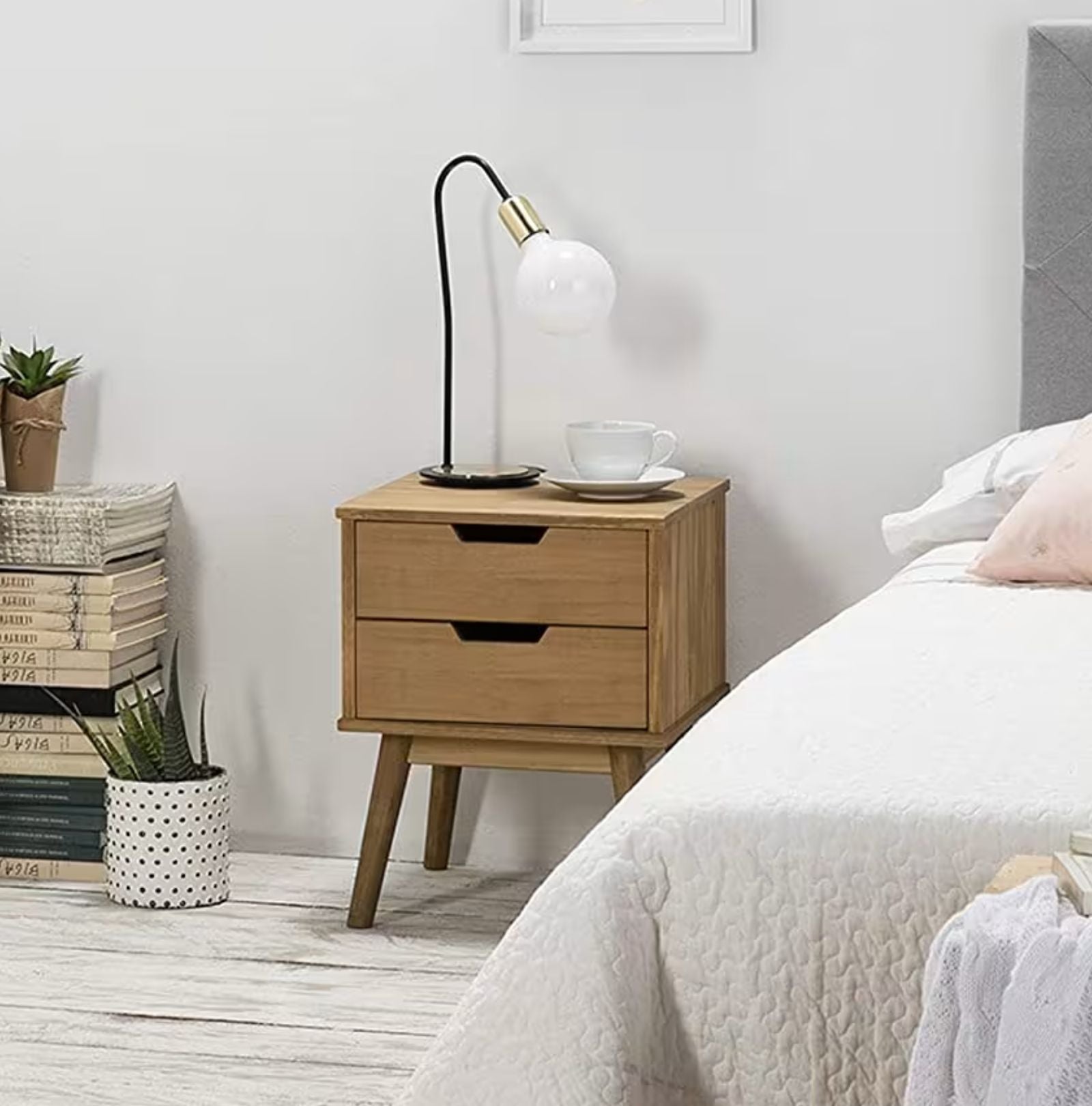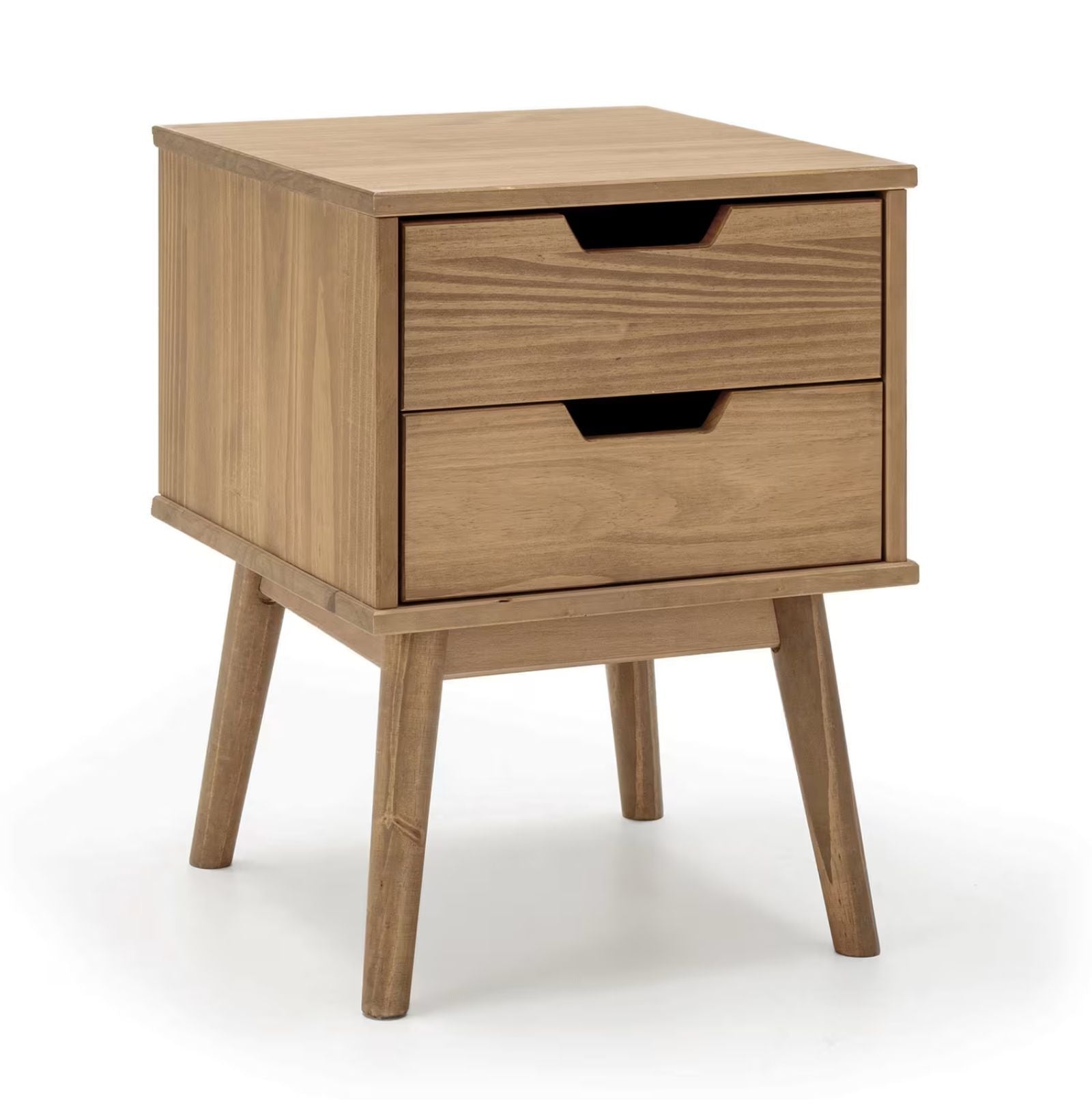 Table de chevet 2 tiroir, fabriqué en bois de pin massif