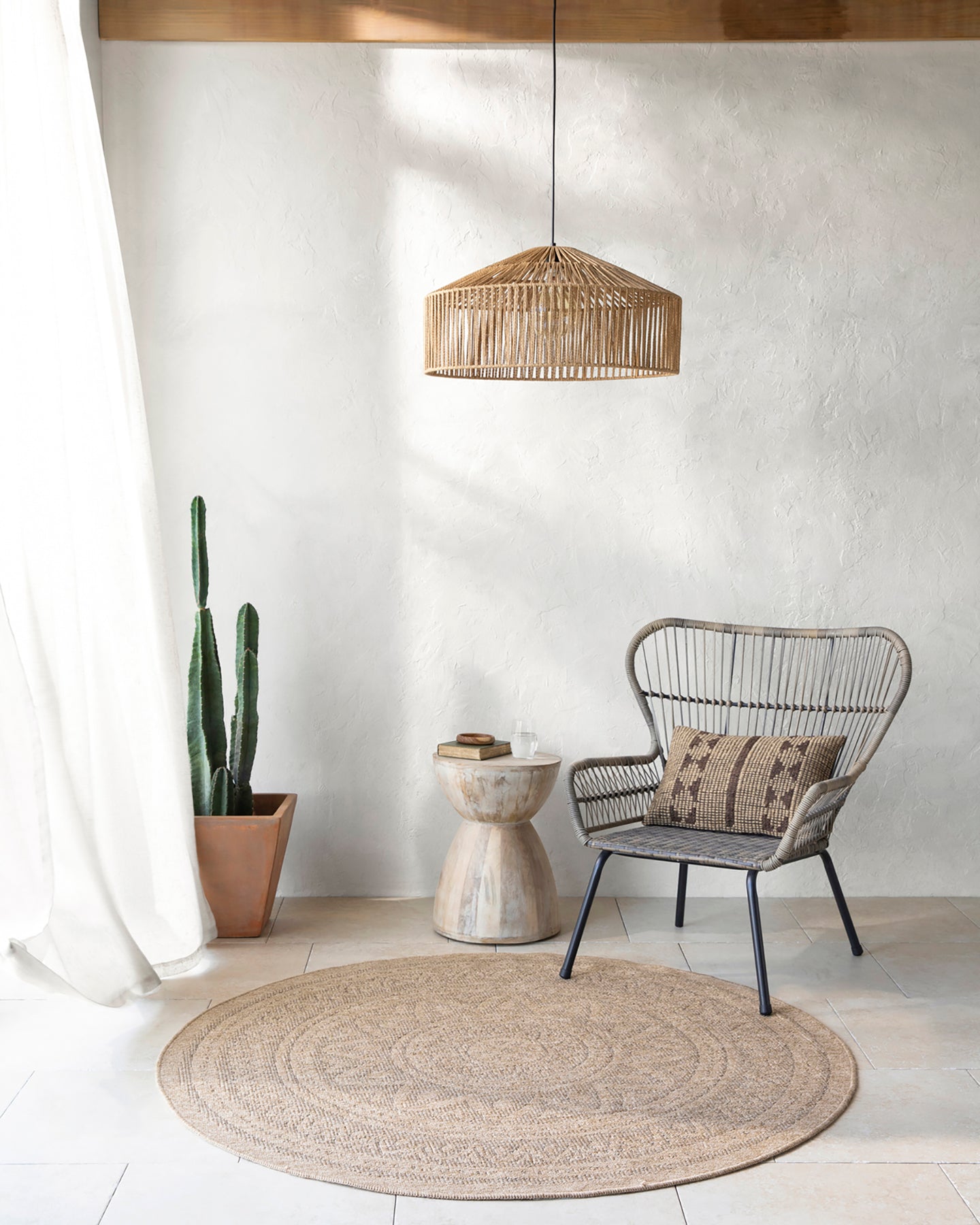 Tapis Rond Extérieur/Intérieur Aspect Jute Beige/Noir Lee