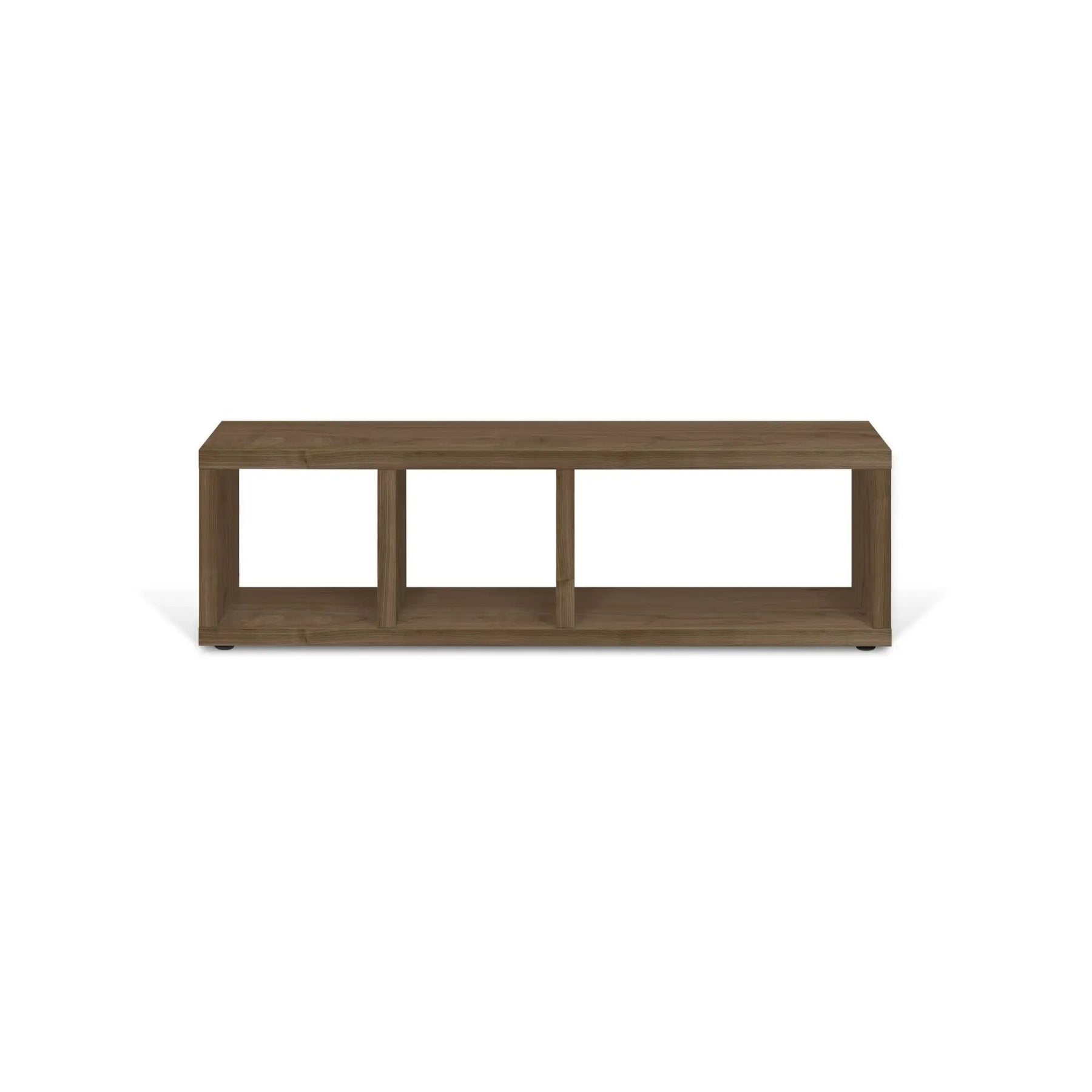 Son placage en noyer véritable apporte une touche d’élégance naturelle, tandis que sa structure en panneaux alvéolaires assure légèreté et solidité. Les trois niches ouvertes permettent d’organiser vos appareils multimédias, livres ou accessoires de salon avec style.