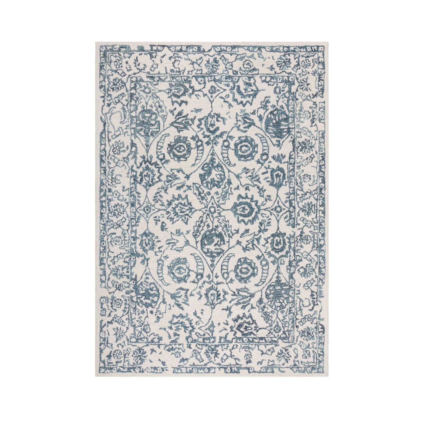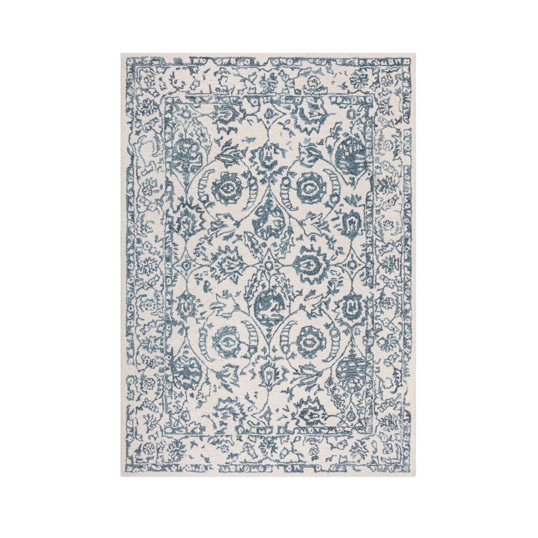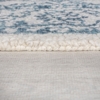 Tapis laine Yasmin ivoire et bleu