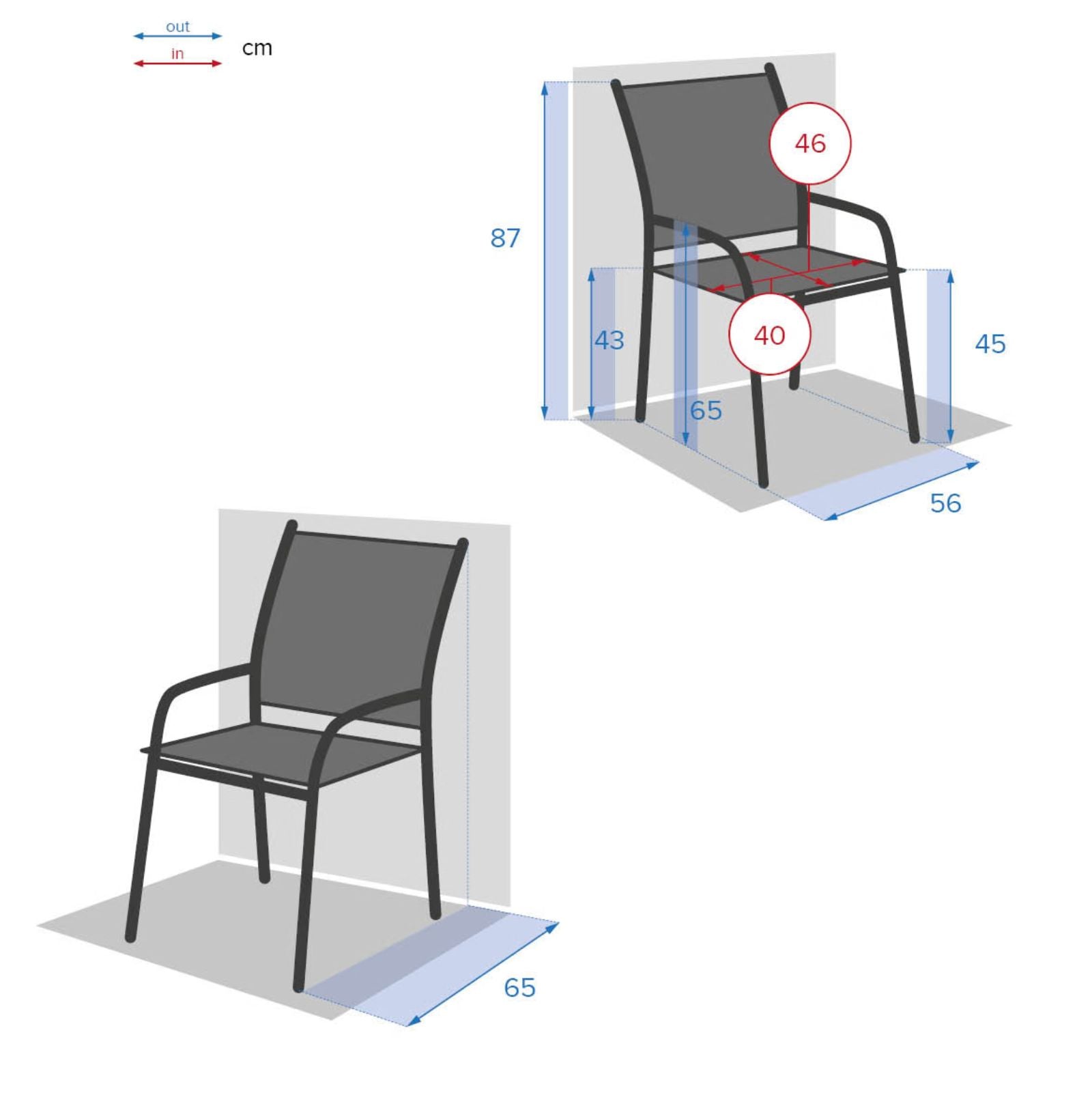 Son assise et son dossier en texaline, une toile en polyester enduite de PVC, offrent souplesse et résistance. Les accoudoirs intégrés assurent une position agréable pour profiter pleinement de vos moments de détente en extérieur.