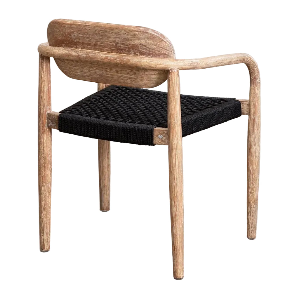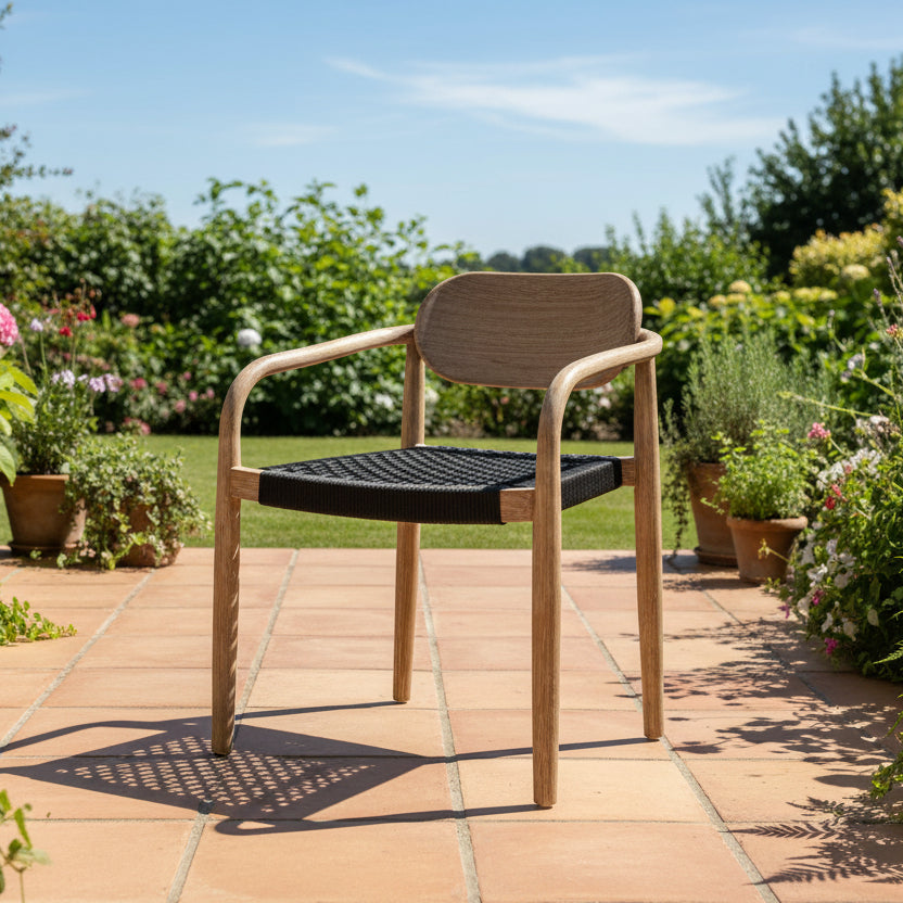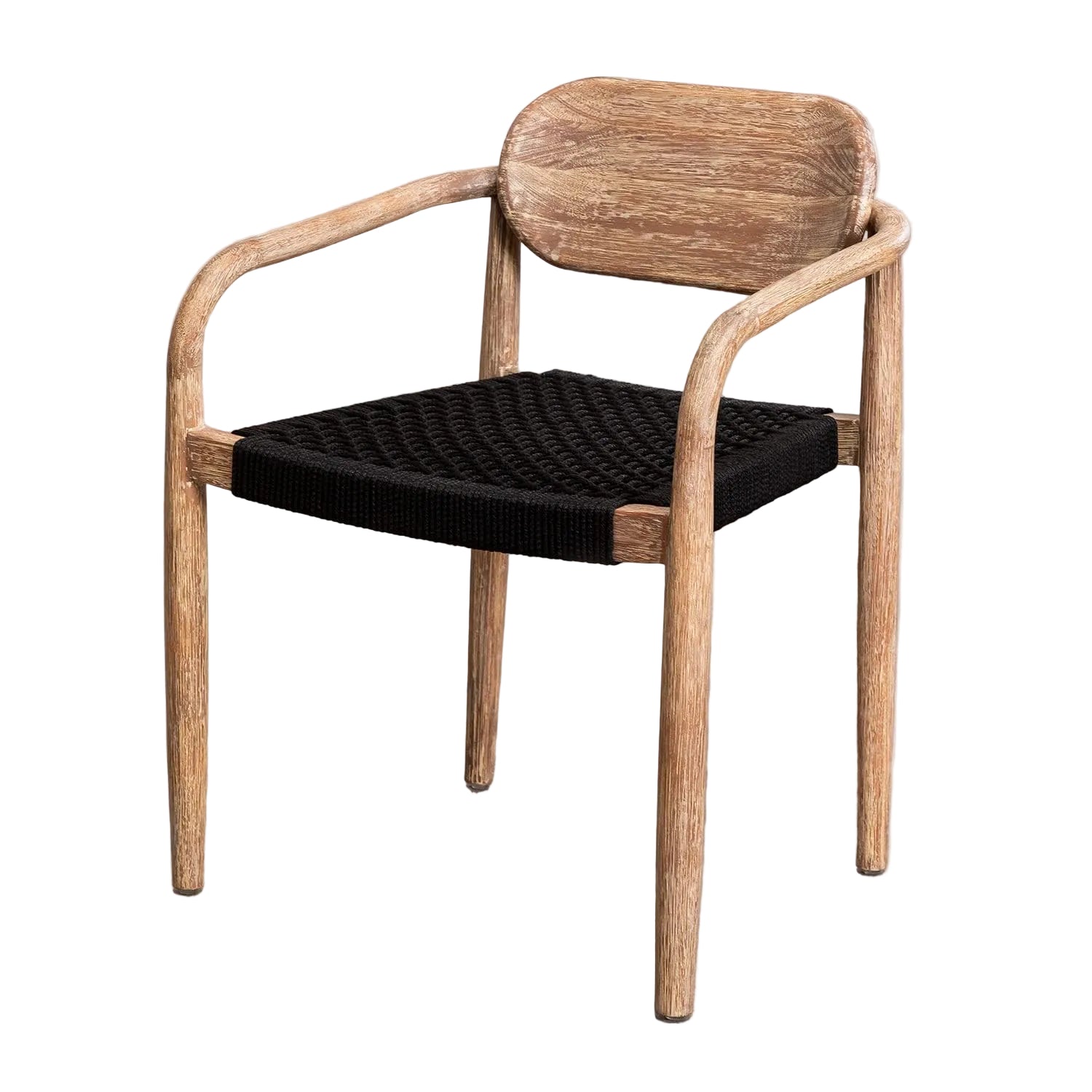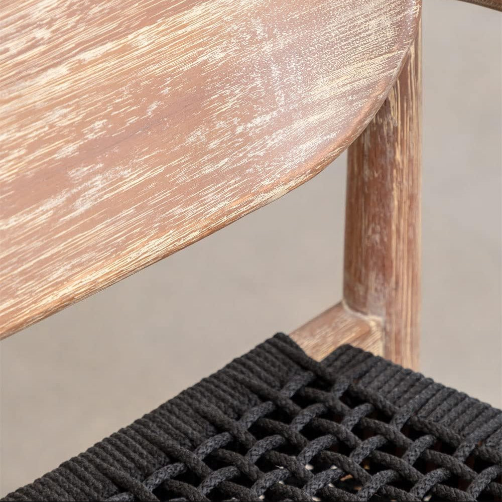 Fabriquées en bois d’eucalyptus avec une finition brossée, elles offrent une excellente résistance et mettent en valeur le caractère authentique du bois. Leur assise en corde synthétique noire tressée apporte une note artisanale très tendance, tout en assurant un confort agréable au quotidien. Les accoudoirs enveloppants renforcent la sensation de confort et invitent à prolonger les moments partagés autour de la table.