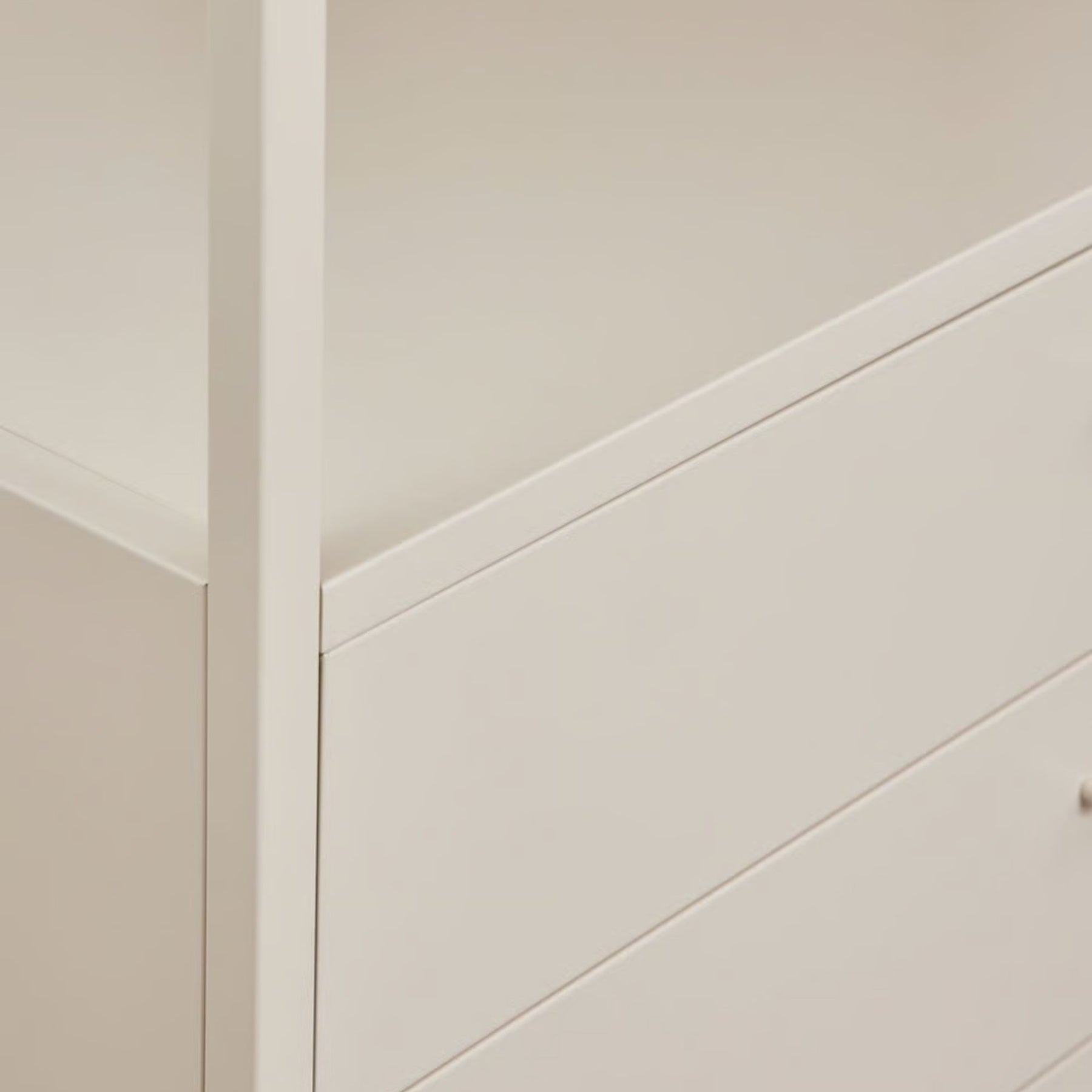 Votre armoire modulaire ouverte SKLUM Janine 2 pièces avec portant et tiroirs beige est vendue avec une livraison incluse au pied de l’immeuble, sur prise de rendez-vous.