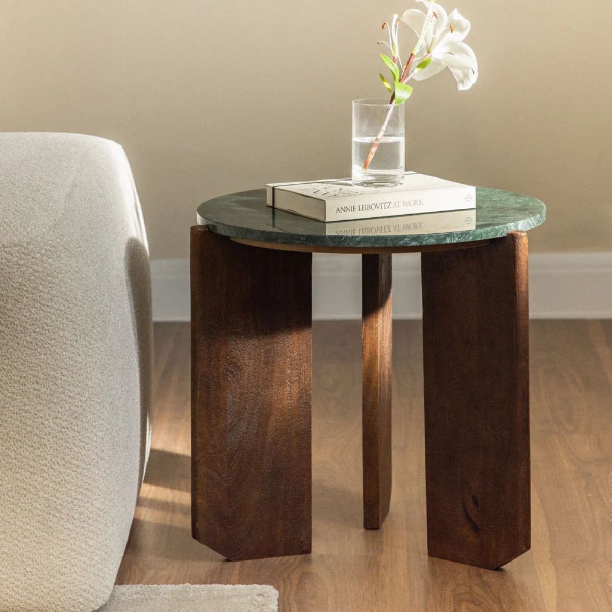 Table d'appoint SKLUM Lavinia ronde Ø50 cm en pierre naturelle et bois de manguier