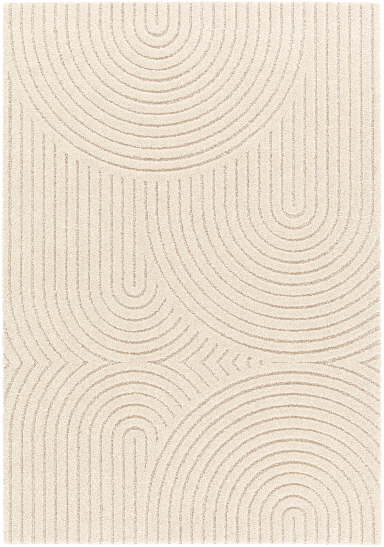 tapis relief graphique crème - hera de style Moderne en couleur Beige, format rectangle avec des dimensions disponibles de 160x230cm,120x170cm, fabriqué en fibres synthétiques. Vue en grand plan du tapis pour apprécier le design global.