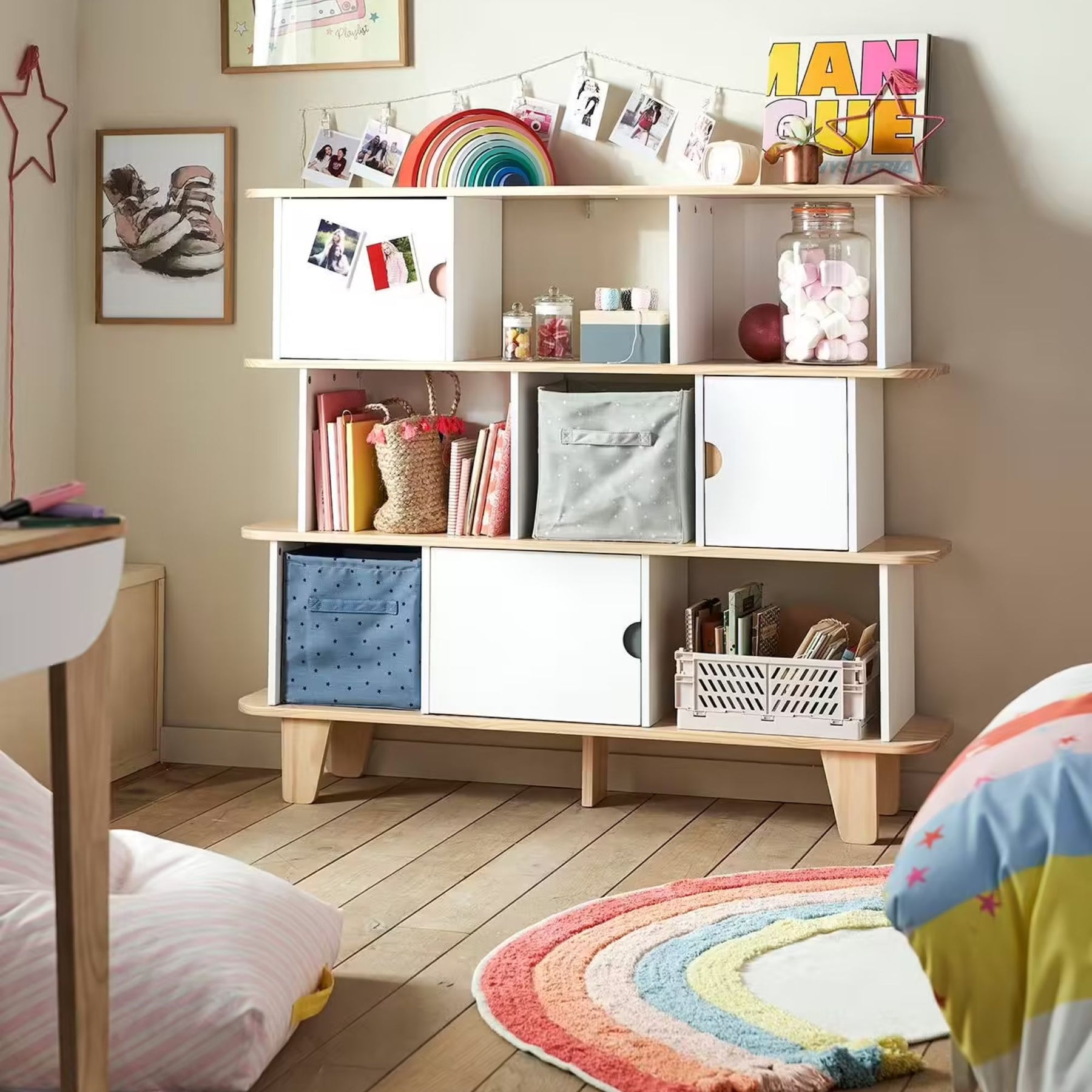 ☁️ Grande capacité de rangement pour livres, jeux ou objets déco