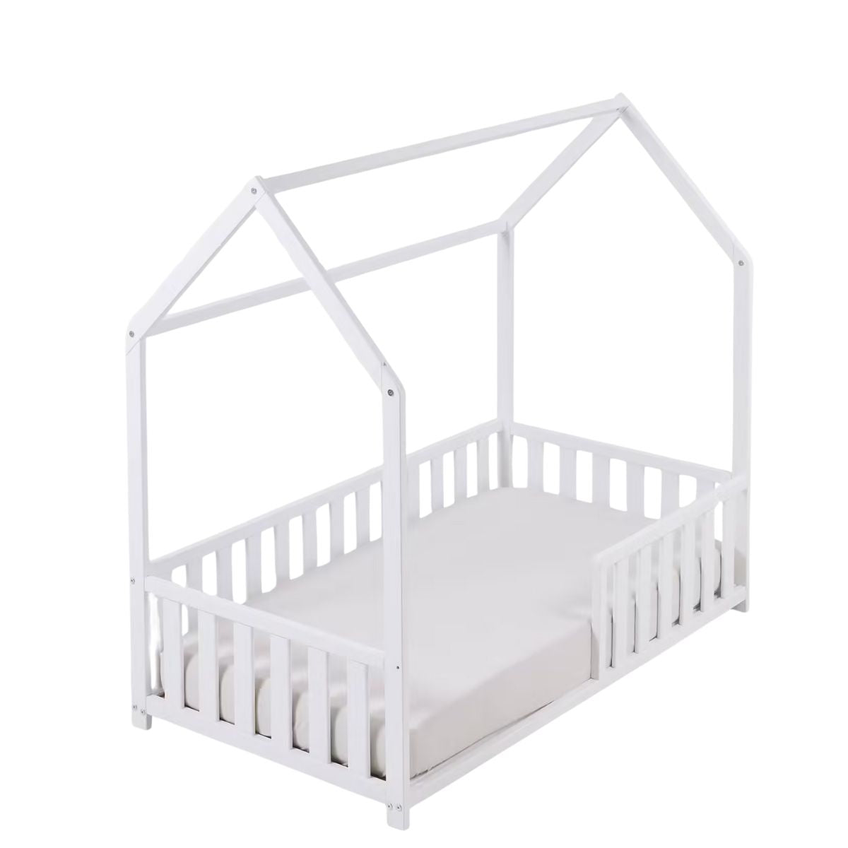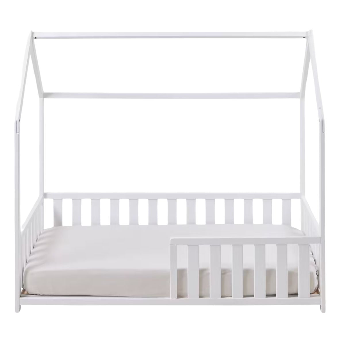 Avec sa structure en forme de cabane, ce lit accompagne parfaitement la transition du lit bébé vers un lit de grand. Son design épuré et sa finition blanche lumineuse s’intègrent facilement dans toutes les décorations de chambre d’enfant, qu’elles soient modernes, scandinaves ou plus classiques.
