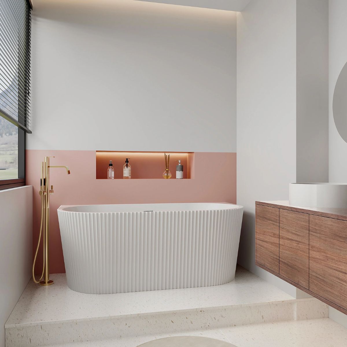 Avec la baignoire semi-îlot ZELINA, profitez d’un mobilier d’exception, alliant design tendance et confort de bain durable.