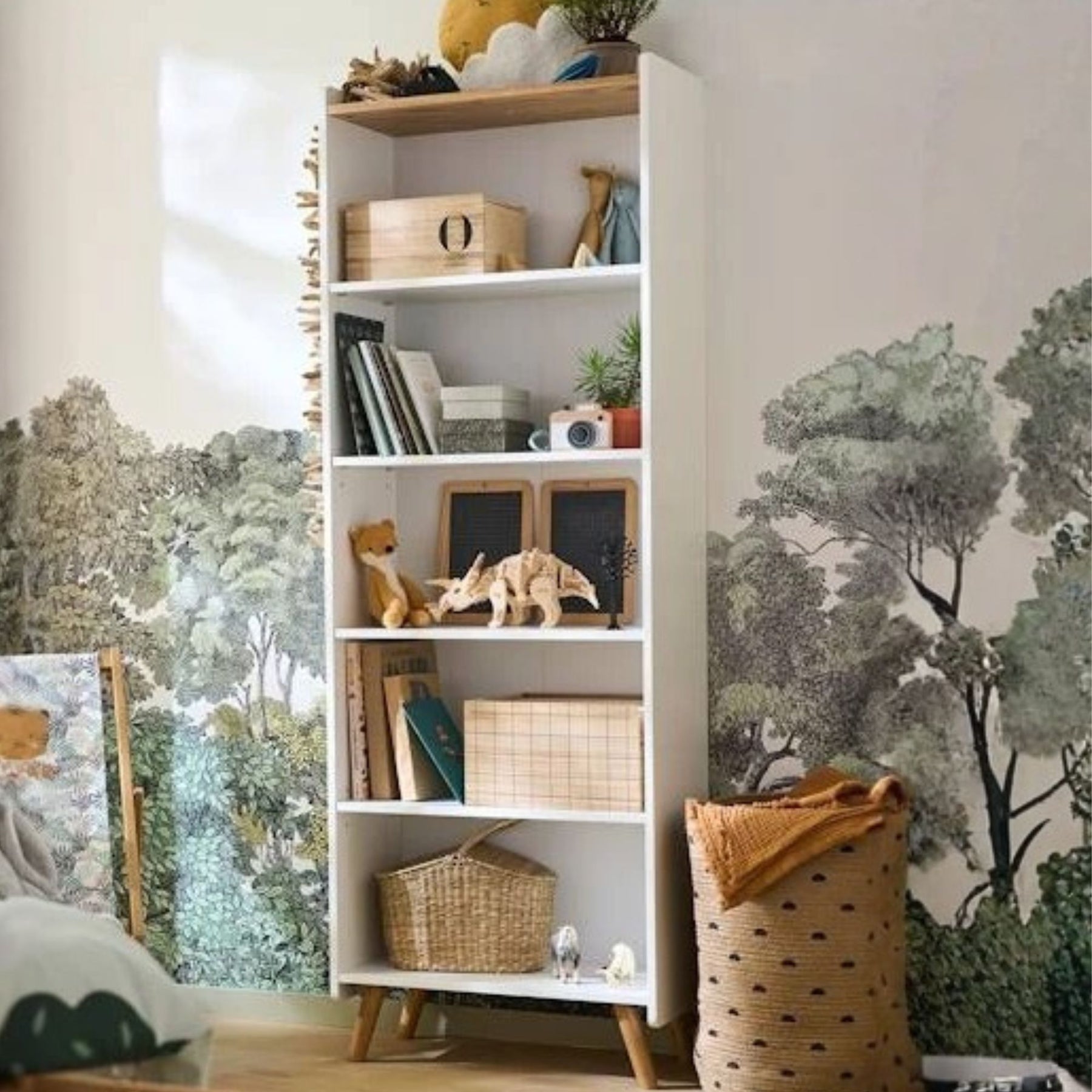 La bibliothèque VERBAUDET Confetti blanc & bois est un meuble de rangement élégant et dynamique, parfait pour organiser les livres, jouets ou objets déco dans une chambre d’enfant, une salle de jeux ou même dans un salon. Sa structure permet d’exposer selon les besoins. Elle accueille les livres de vos enfants et leurs plus belles histoires pour des heures de lecture propices aux développement de leur imaginaire.