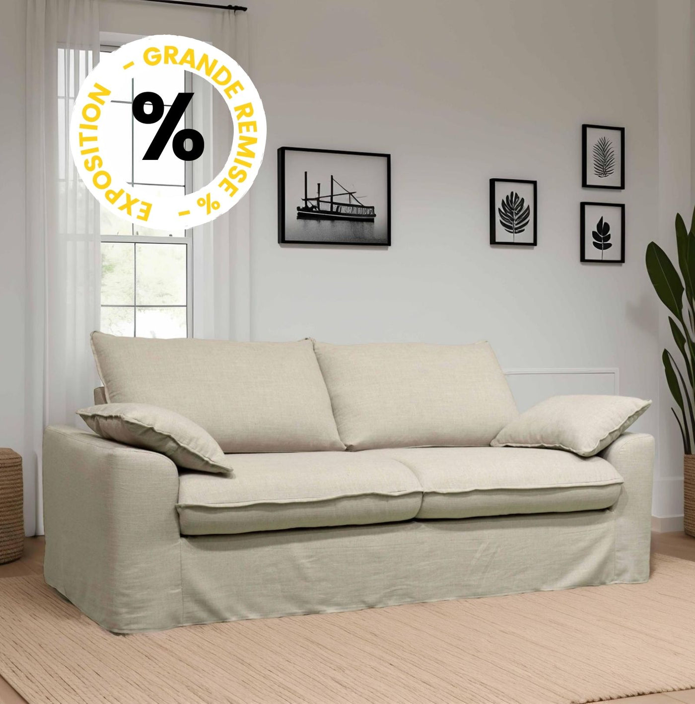Laissez vous charmer par ce canapé 3 places en lin de grande qualité fabriqué en France