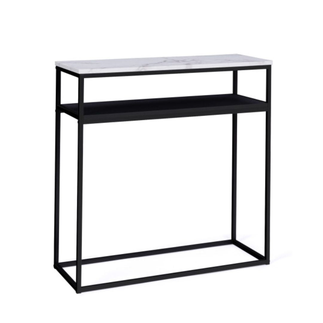 Console d'entrée Glam double plateau effet marbre et pieds noirs