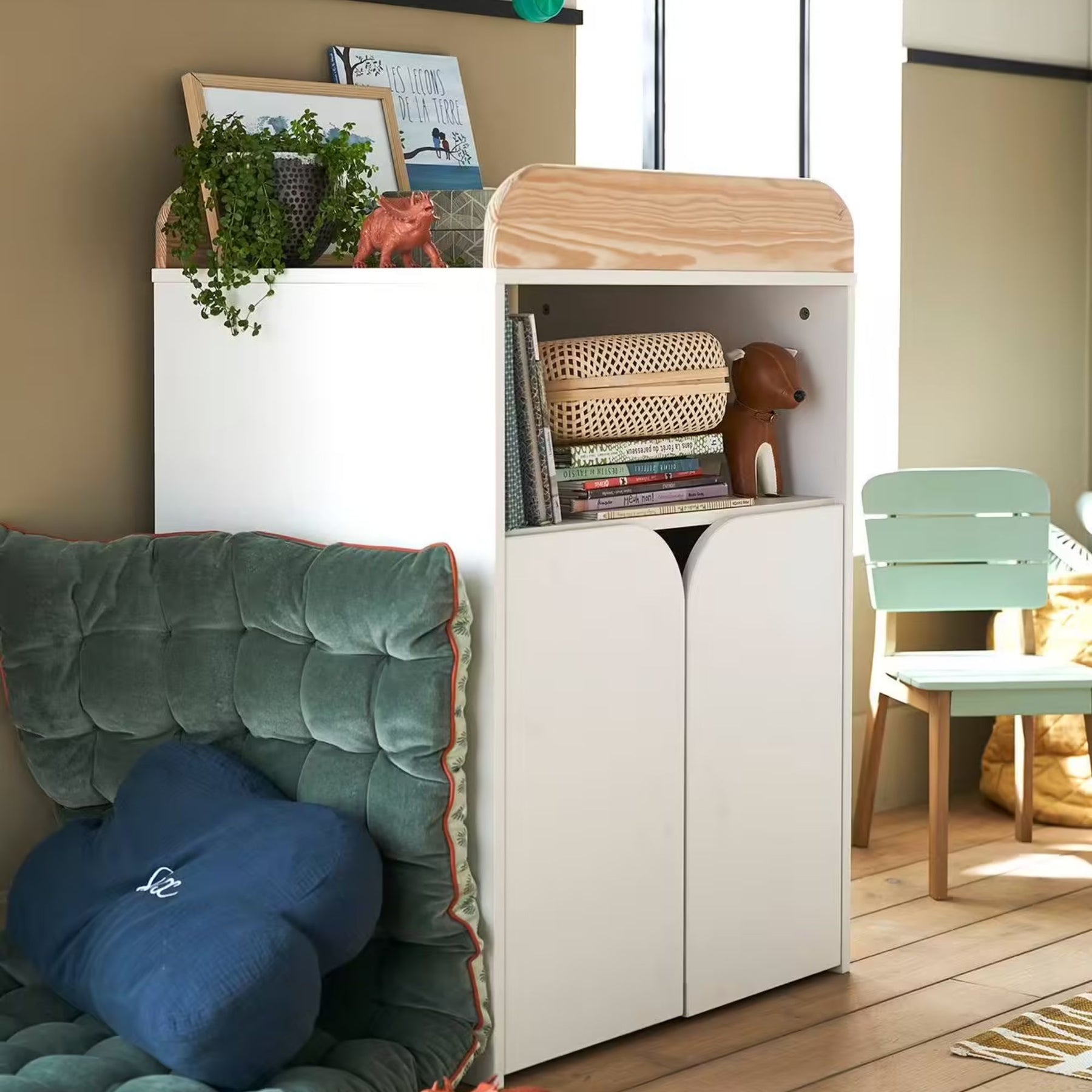 Commode-rangements avec plan à langer sur le dessus