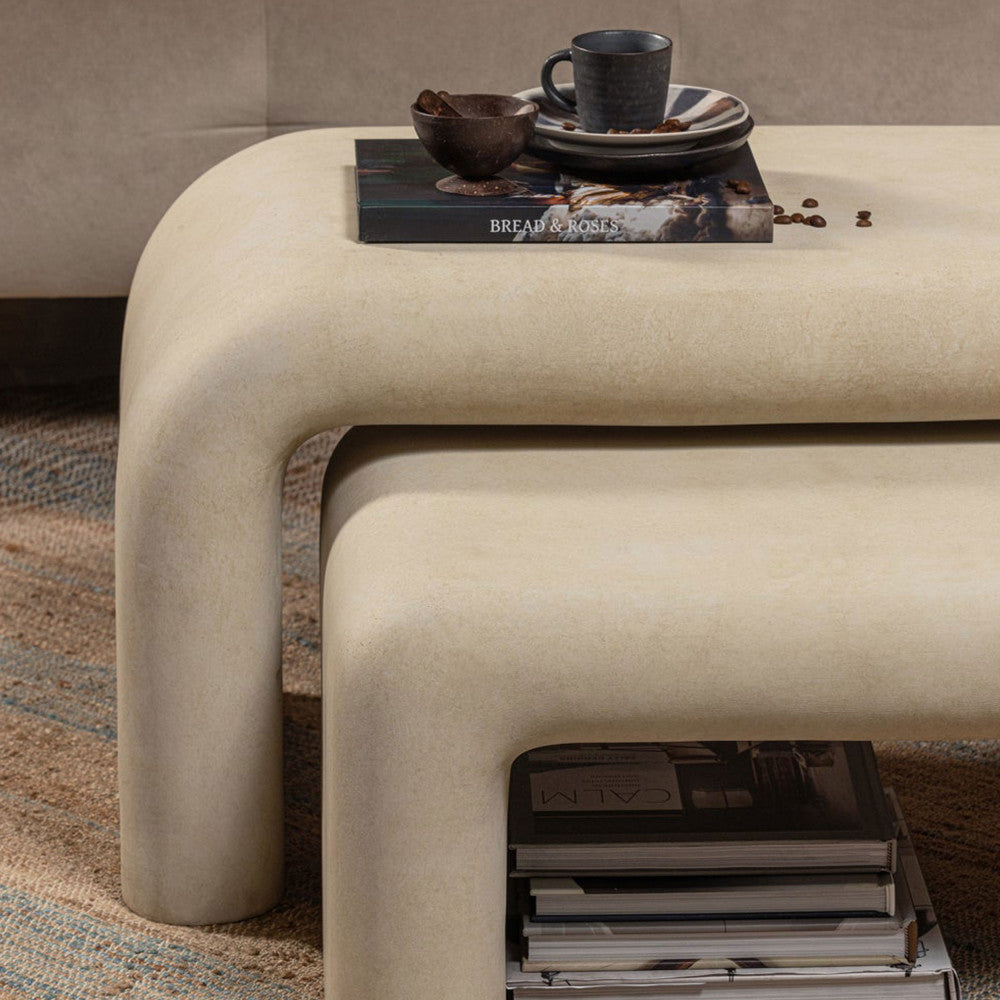 Lot de 2 tables basses organiques DRAWER Stani effet béton Beige