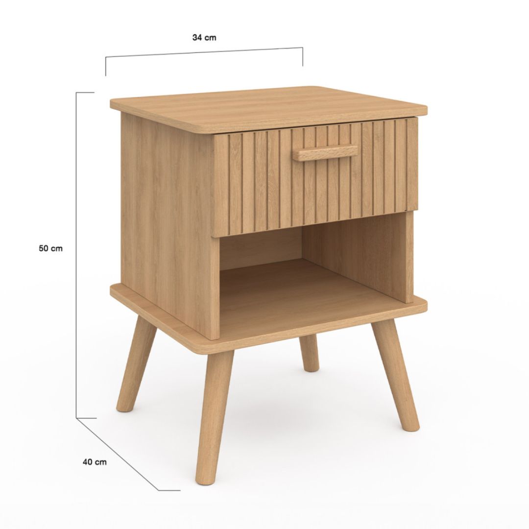 Ce joli lot de deux tables de chevet apportera une touche tendance à votre intérieur. Leur tiroir ainsi que leur tablette de rangement vous permettront d'entreposer vos affaires en gardant un espace bien rangé et organisé. Leurs façades de tiroir en effet lattes donneront du cachet à votre chambre.
