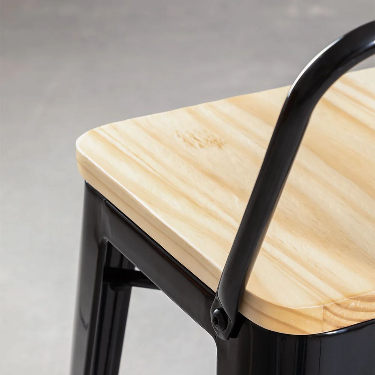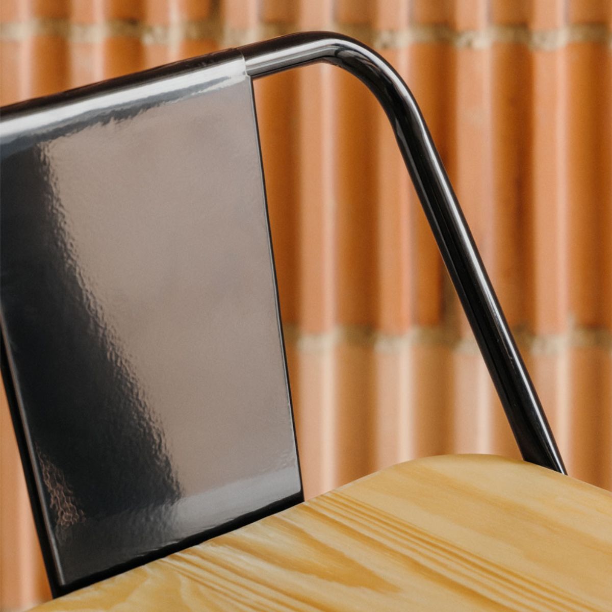Leur structure en acier robuste garantit une excellente stabilité, renforcée par des traverses croisées. Le dossier intégré apporte un confort appréciable, idéal pour prolonger les repas, tandis que l’assise en métal, dotée d’un trou central, facilite la prise en main et assure une bonne ventilation — un clin d’œil à leurs origines industrielles.