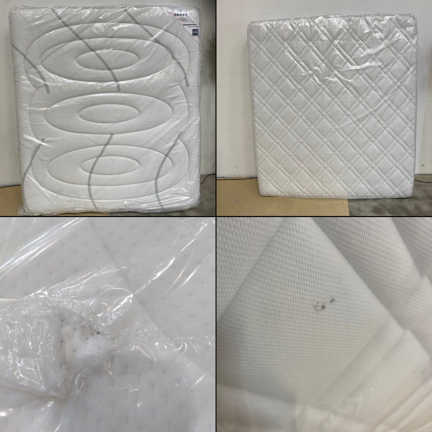 Matelas issu d'un litige transport, jamais utilisé. Il a été nettoyé et désinfecté dans notre atelier de reconditionnement. Des défauts purement esthétiques subsistent malgré le nettoyage et la désinfection (voir photos).