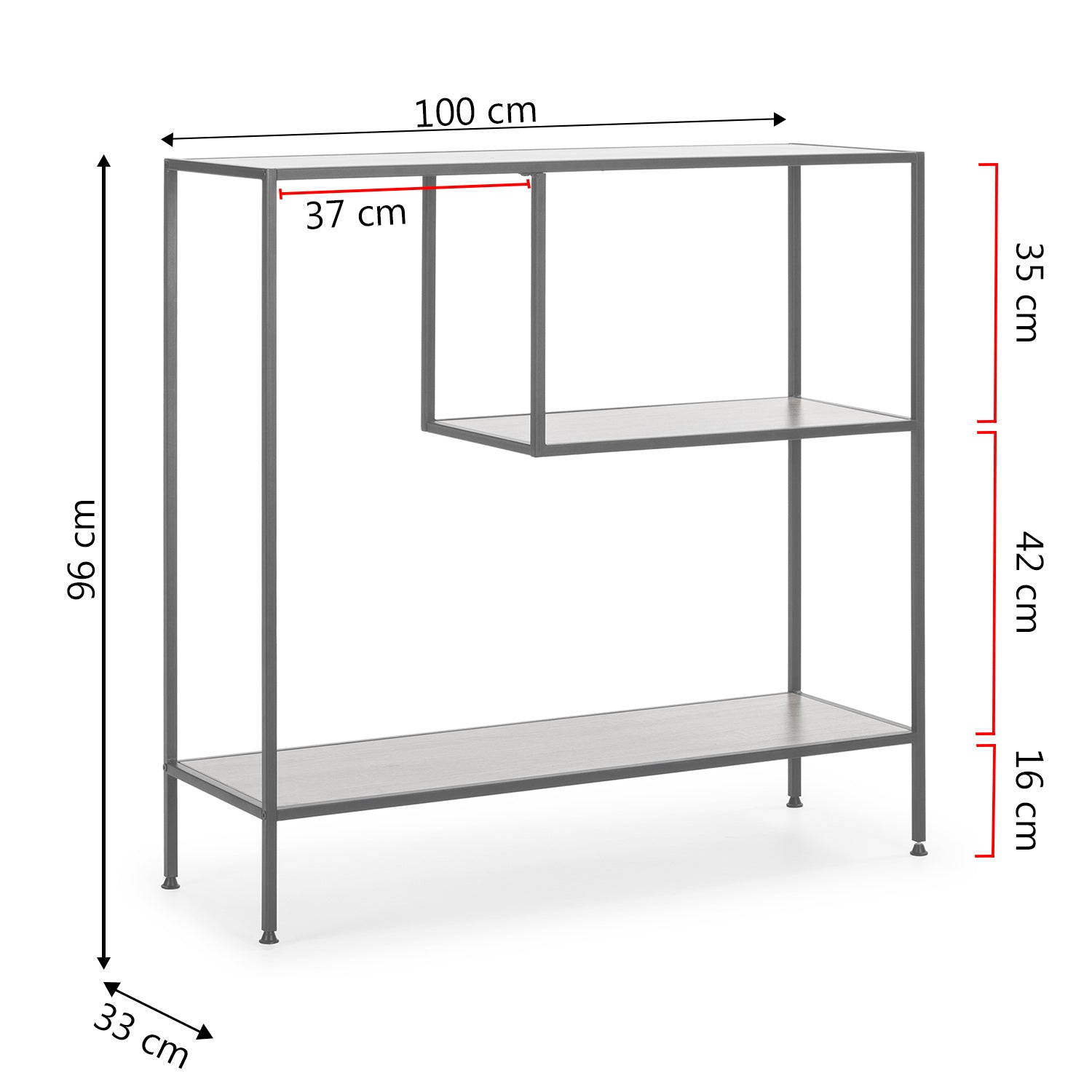 Meuble d'entrée avec 2 étagères, couleur chêne/noir