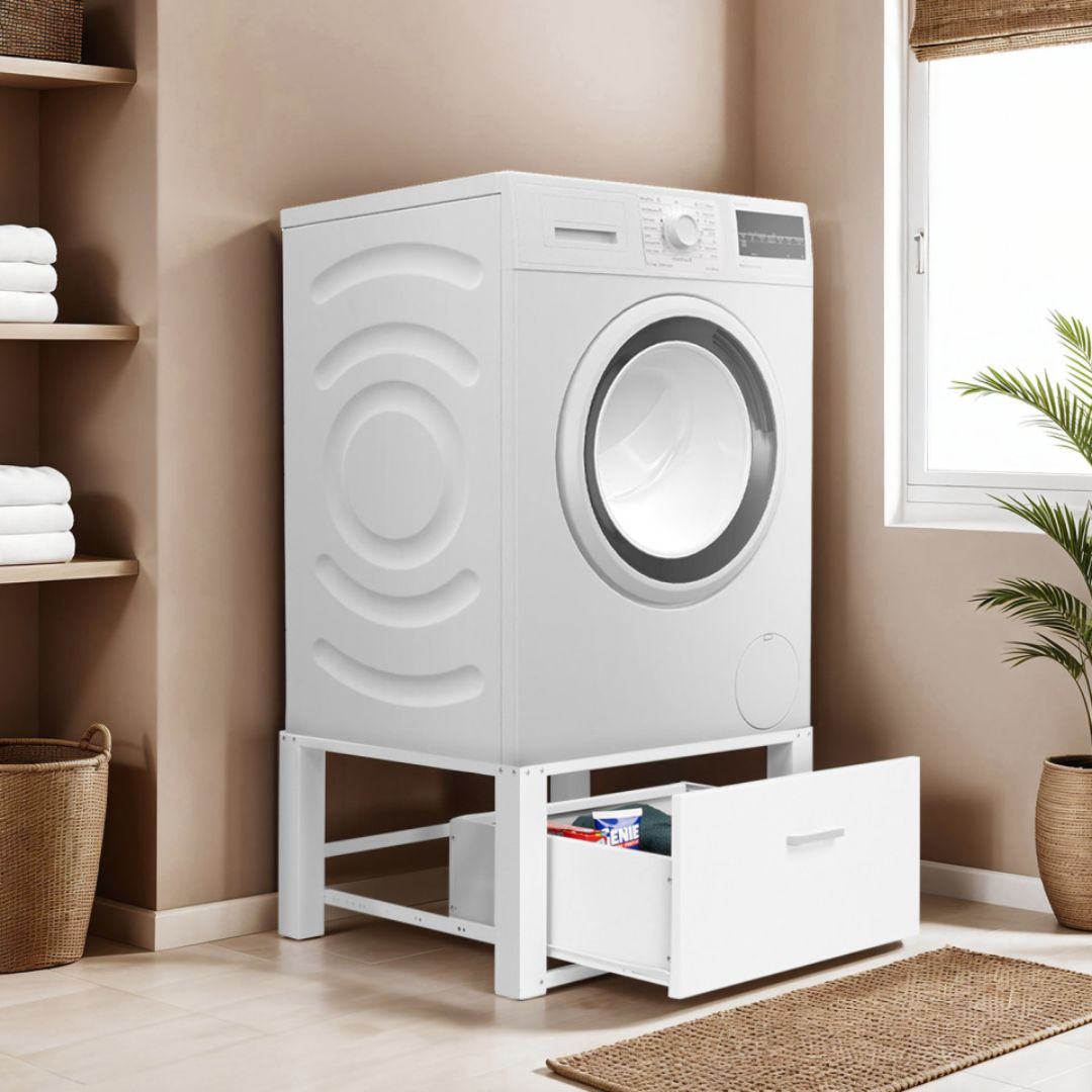 Ce socle pour machine à laver vous permettra une utilisation plus ergonomique de votre machine, grâce à sa surélévation et son tiroir. Utile pour ranger vos lessives, adoucissants, ou autres.