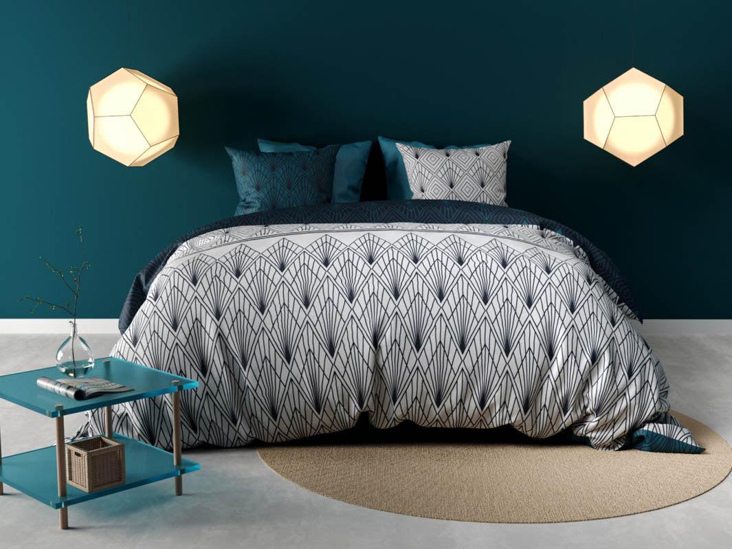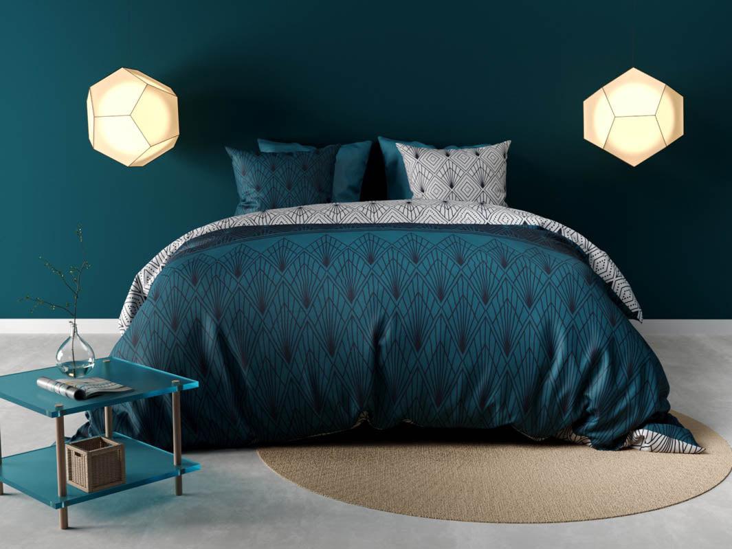 Parure de lit AGDAL reversible percale 240x220cm+2 taies 63cm