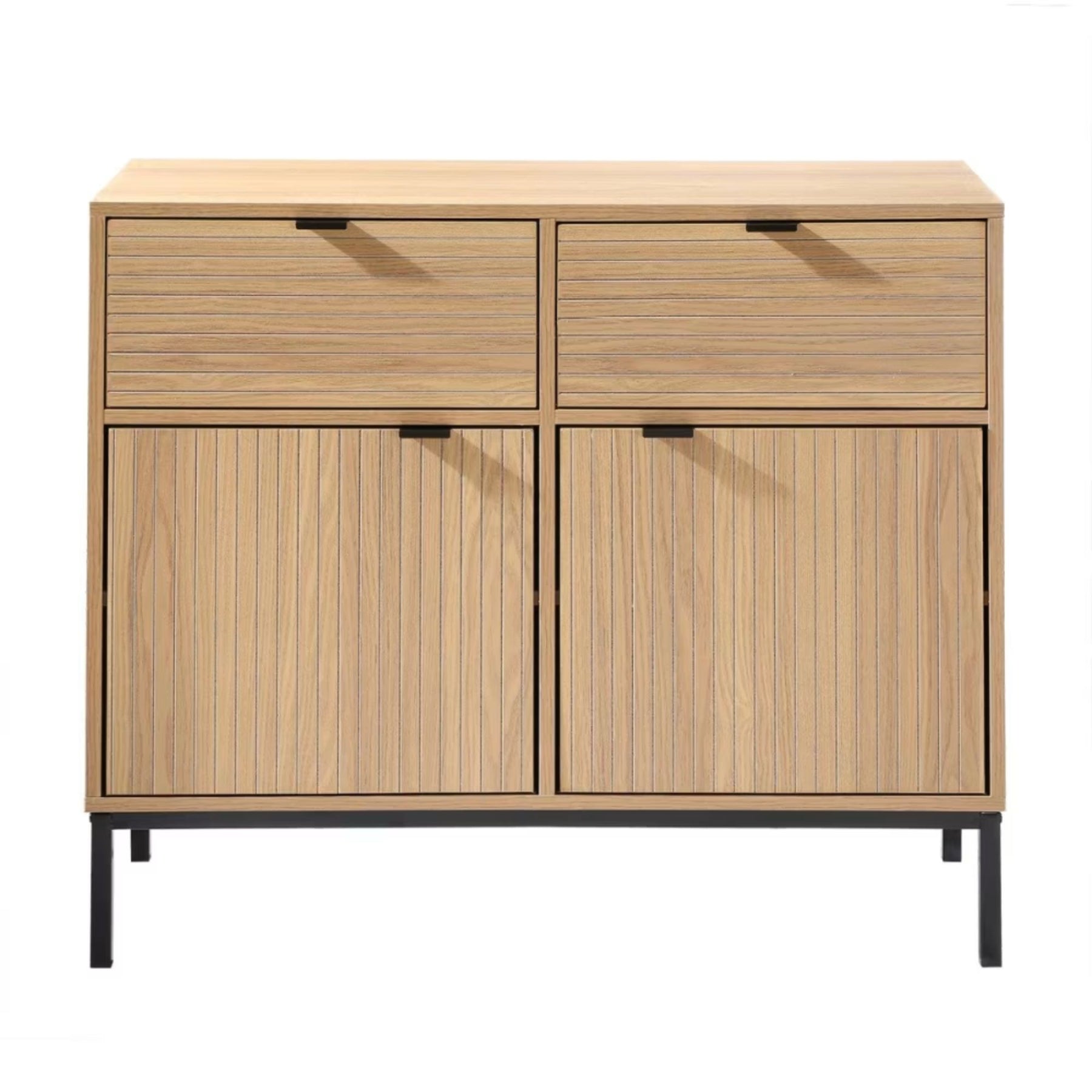 Petit buffet CALICOSY Tara 2 Portes 2 Tiroirs Façades Rainurées L90 x H79 cm