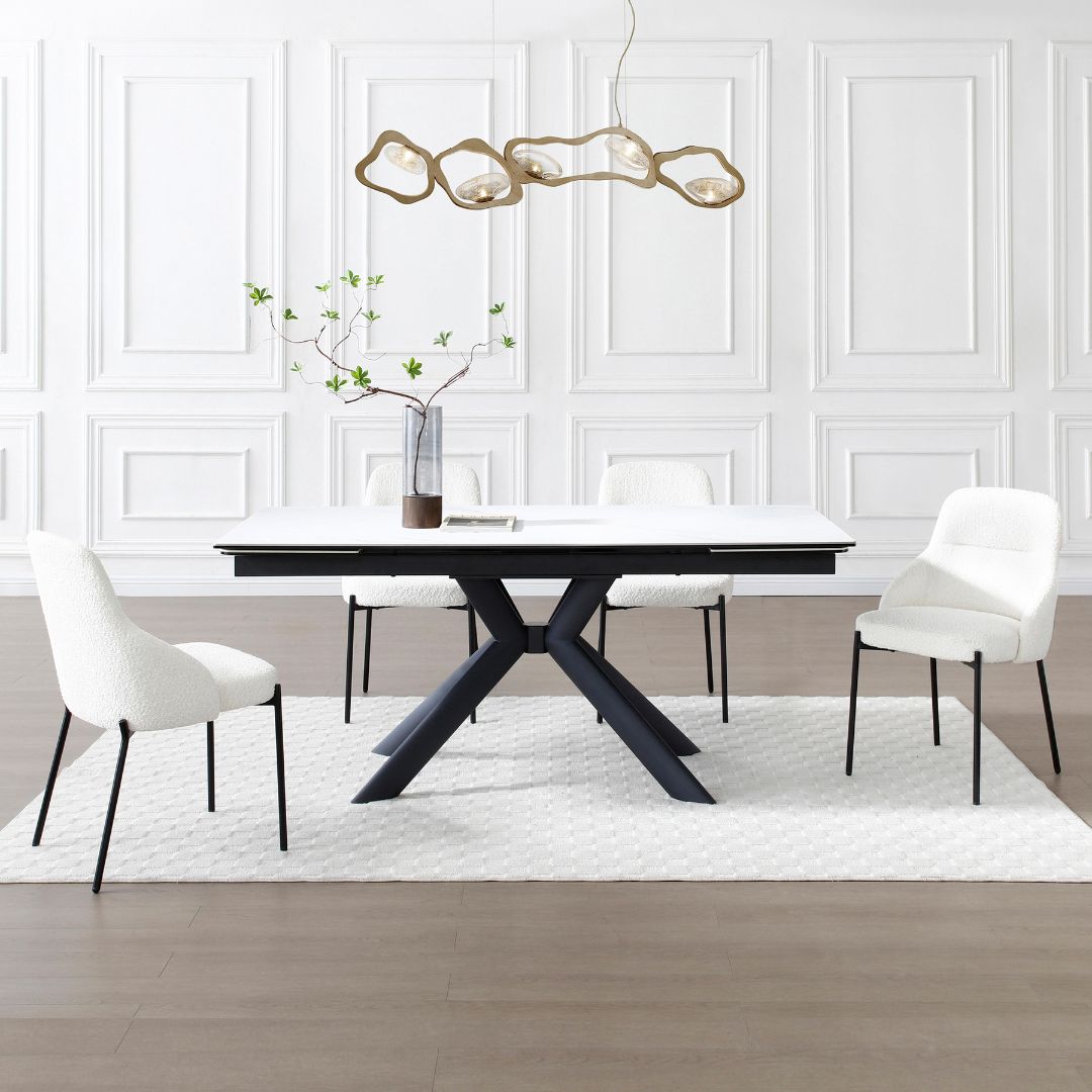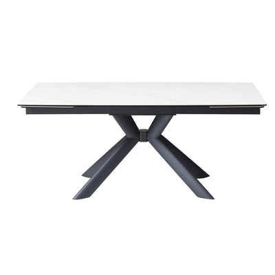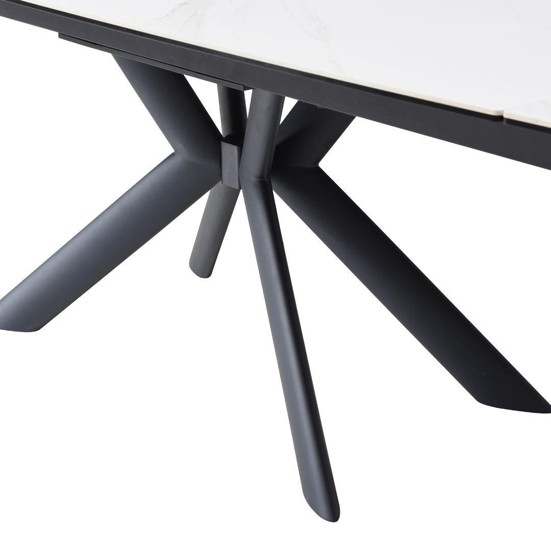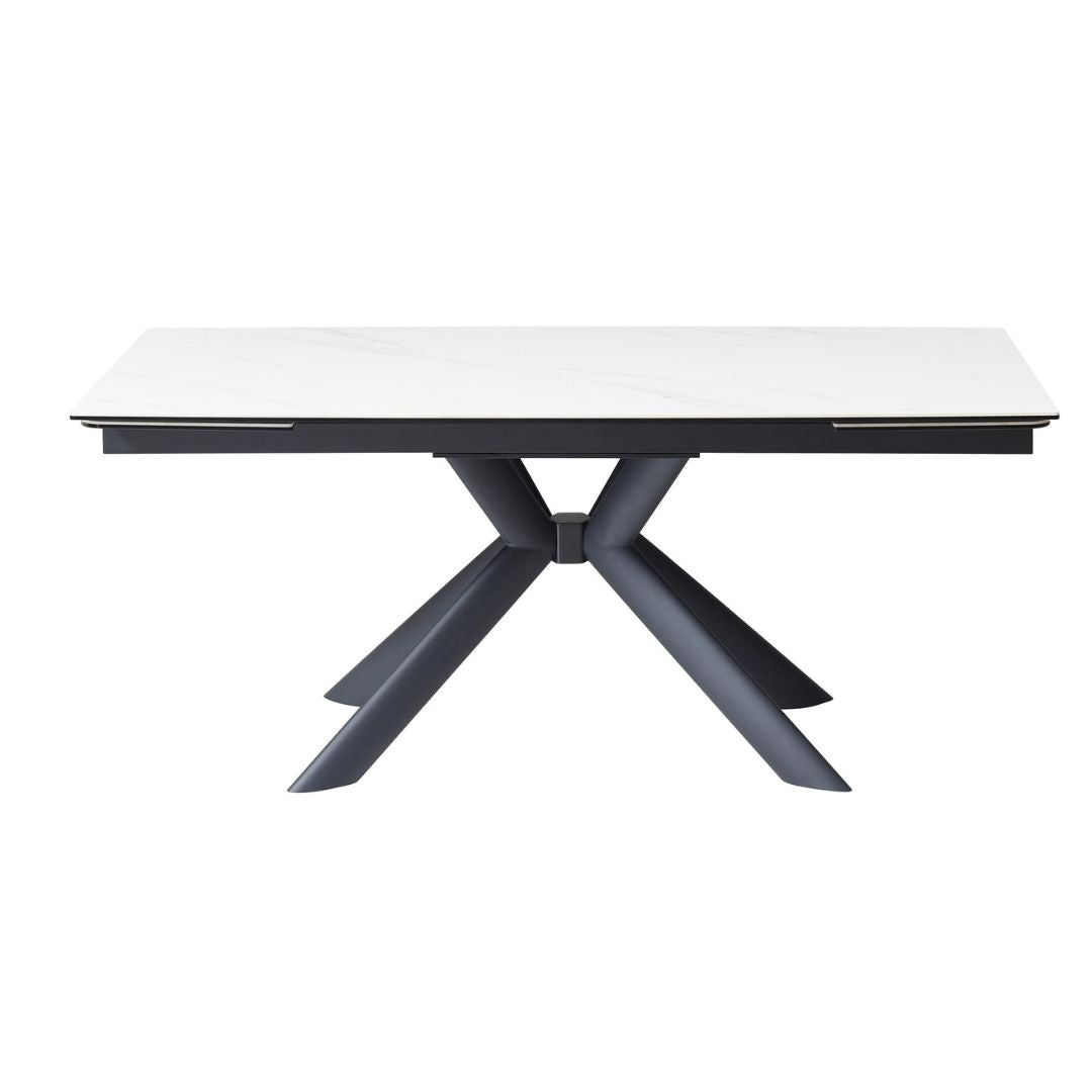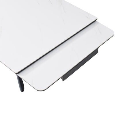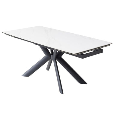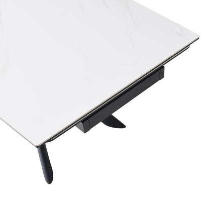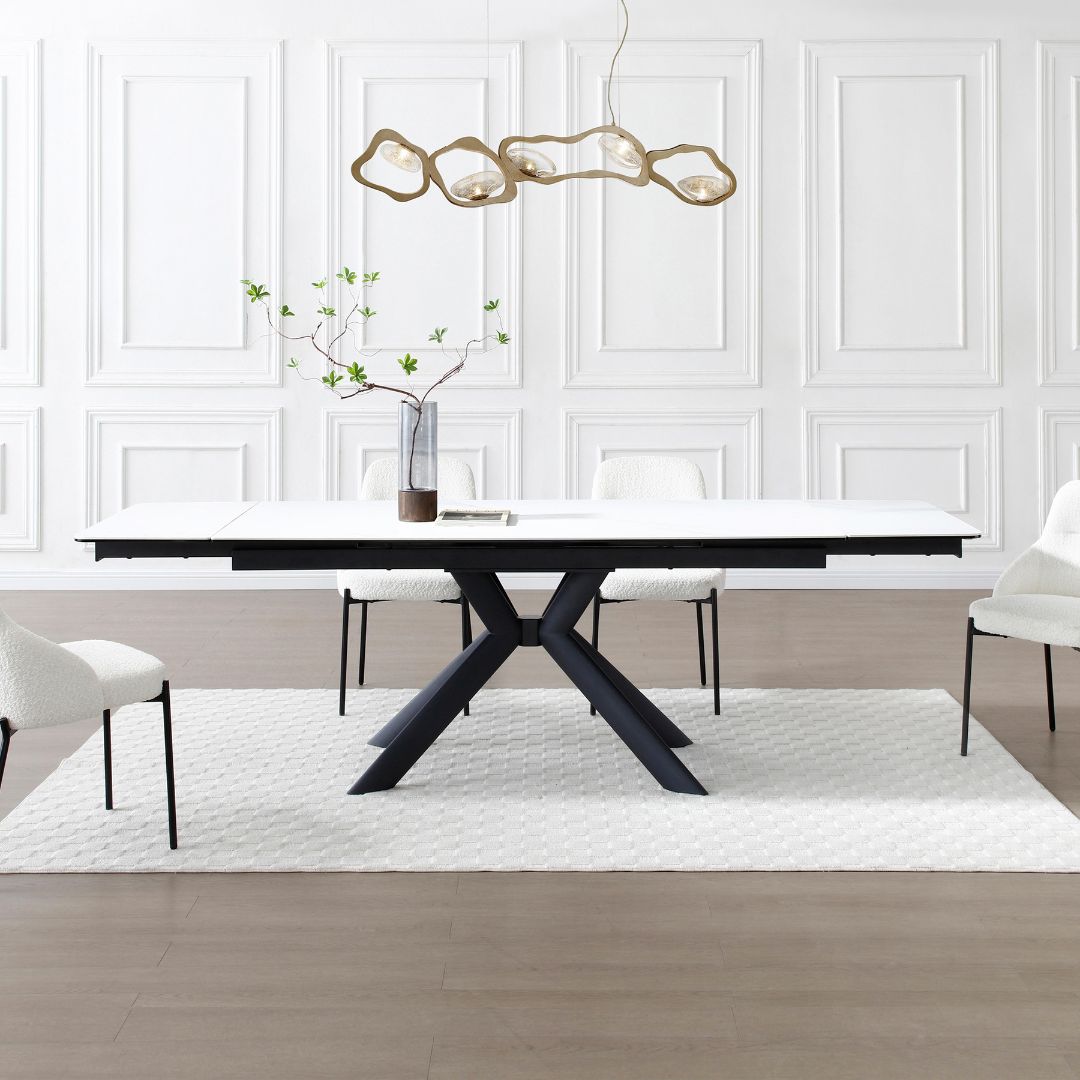 Table à manger Vente Unique extensible 6 à 10 personnes en céramique, verre trempé et métal - Effet marbre blanc et Noir - LIOMINA de Maison Céphy